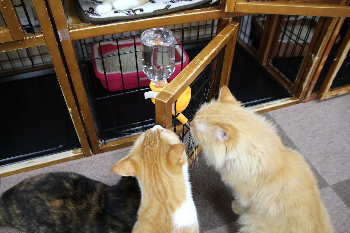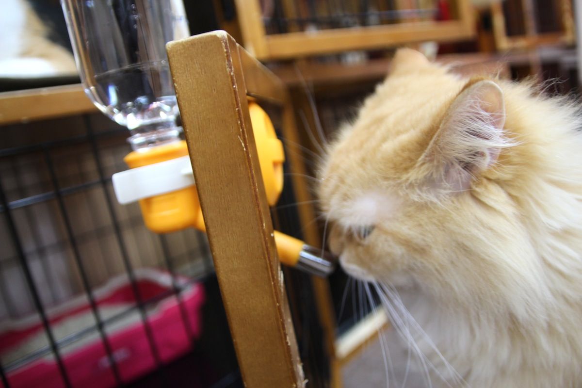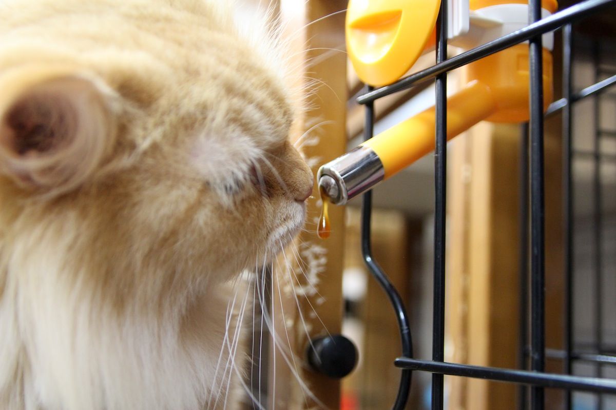 動物用の給水器。先の部分を舐めると水が出てくるタイプですね。
