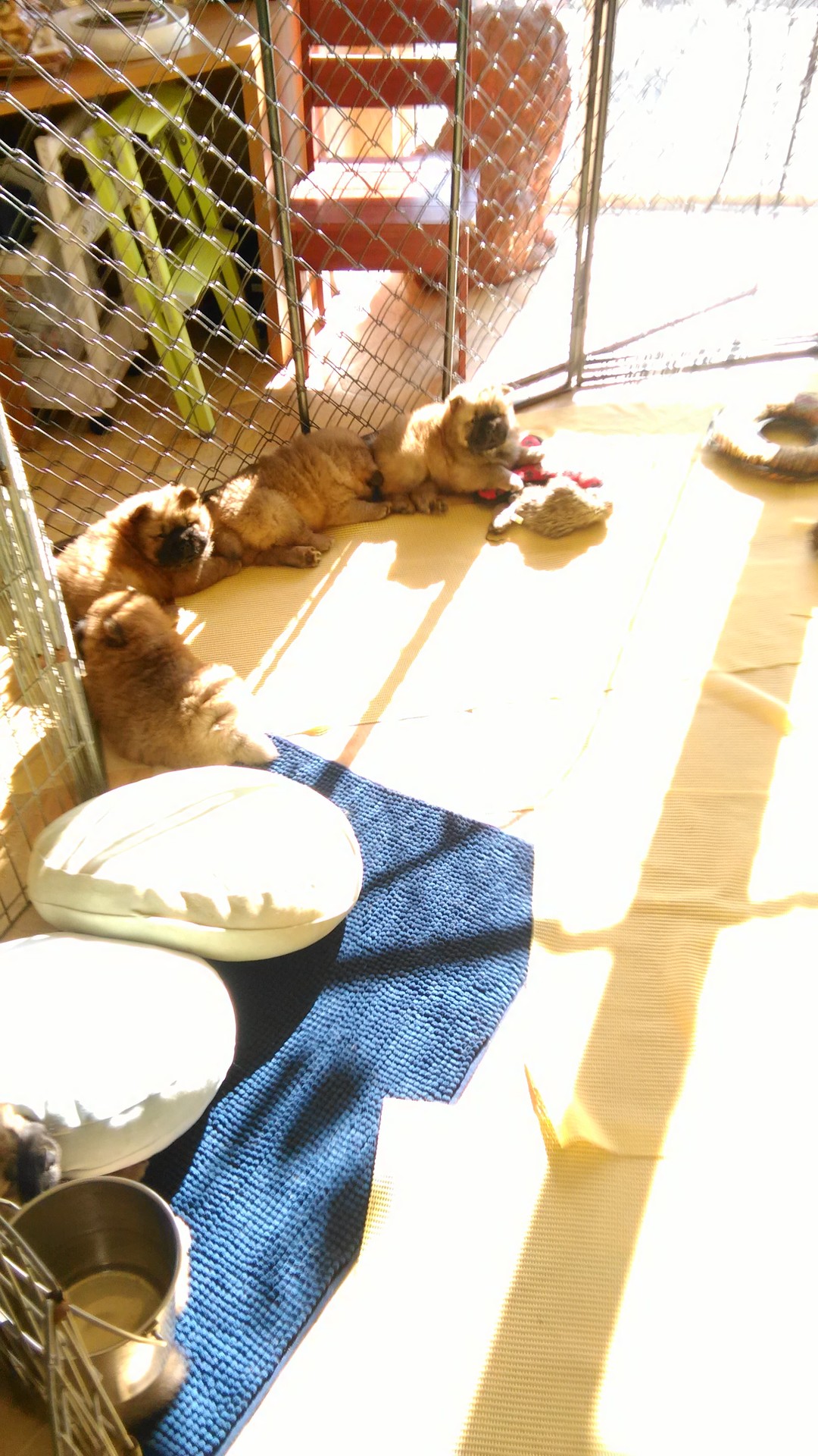 バリケンネルの間の隙間を広くして寝場所にしてます。笑