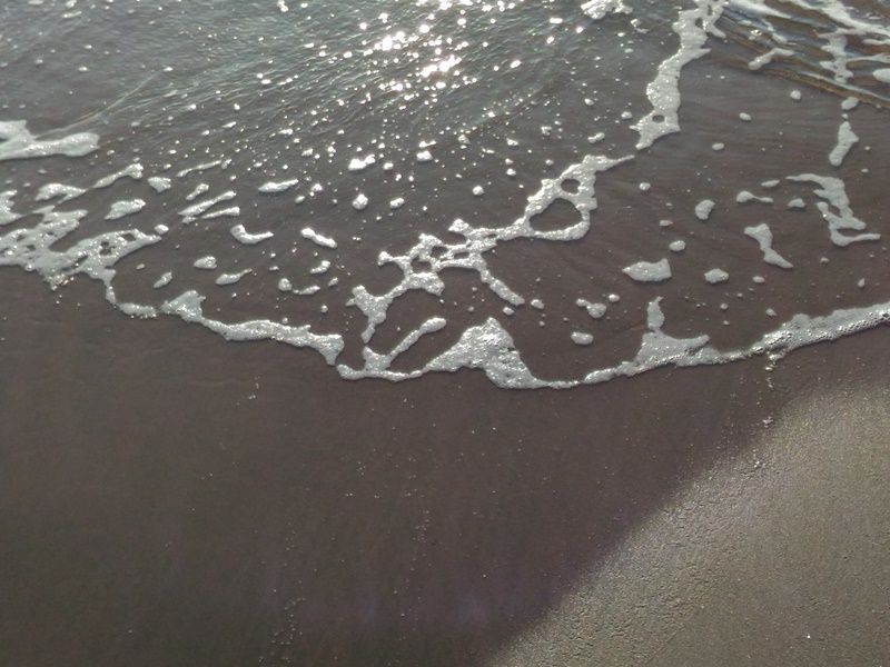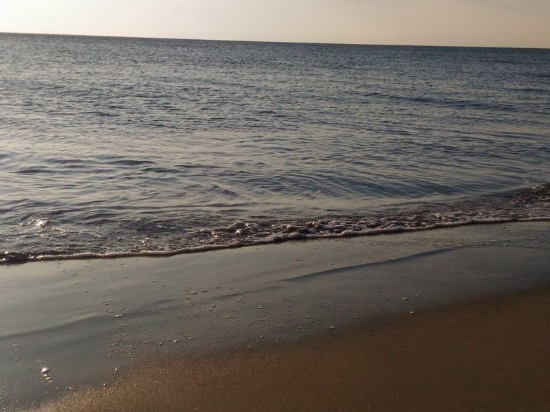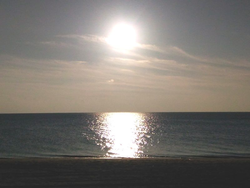 海岸ではすでに朝日が高く、海はキラキラとまぶしく輝いていた