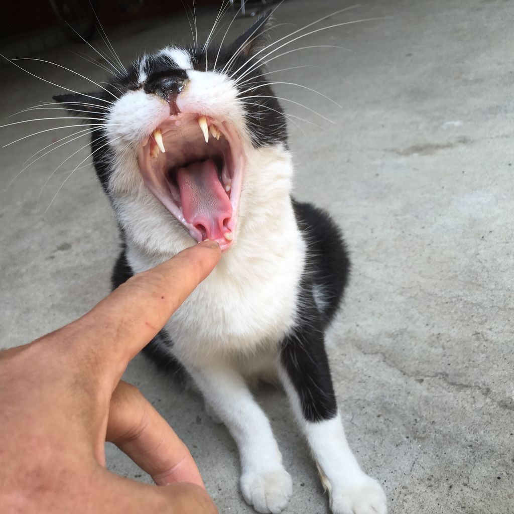 牙をむくというか、あくびMAXのところで撮れたやつなんですが。