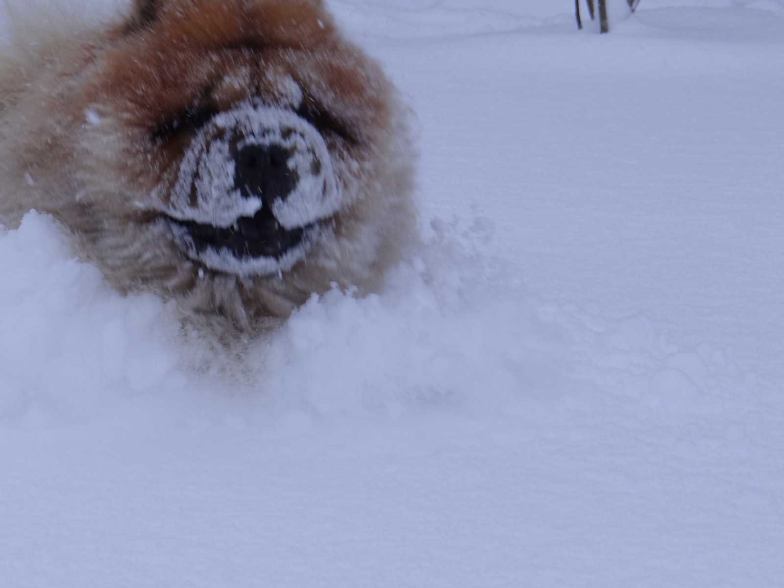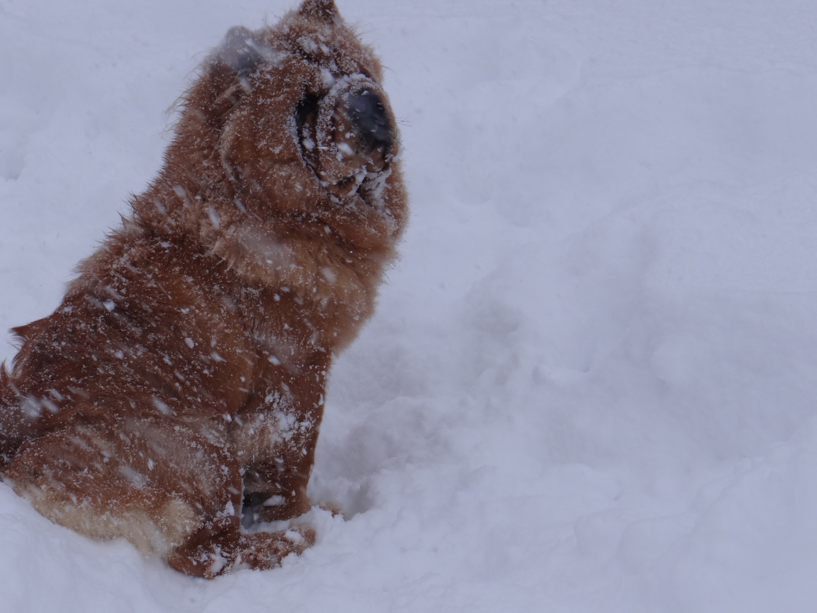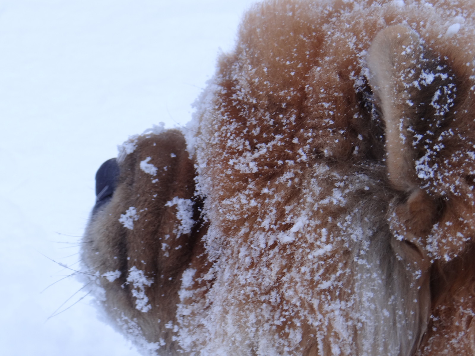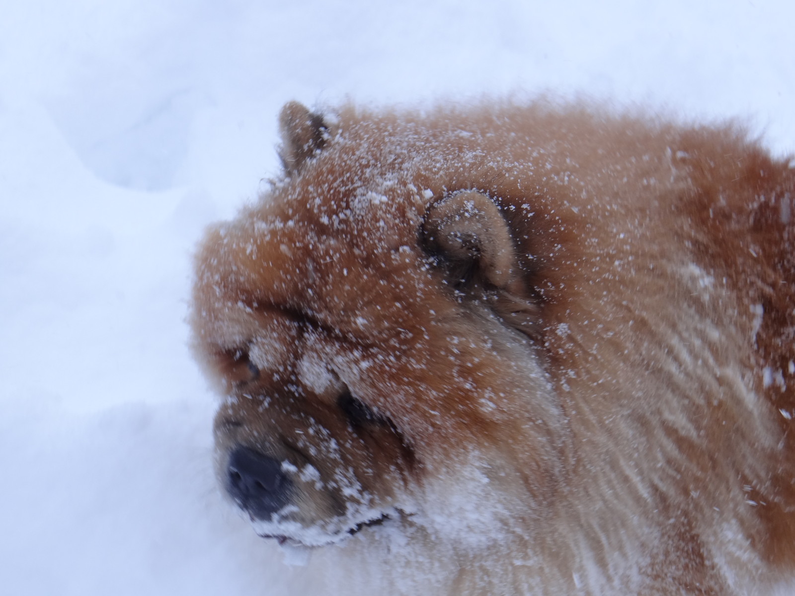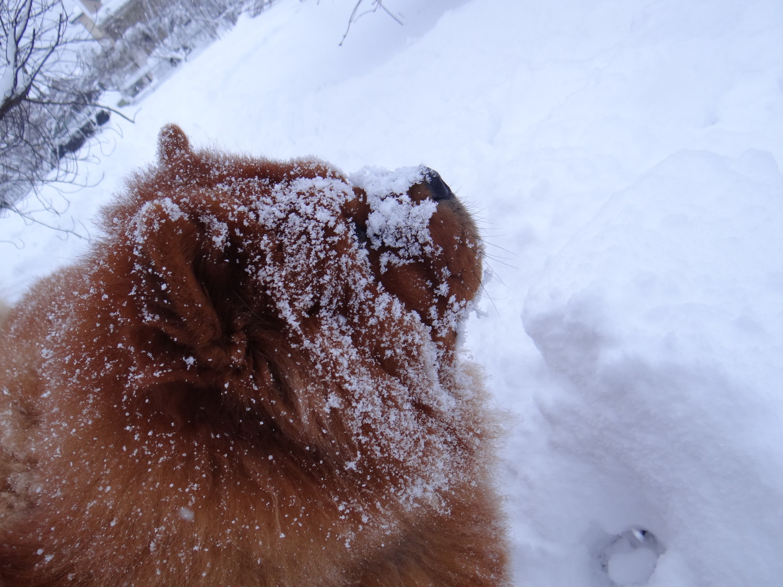 ふぃっちゃん、鼻の上の雪がなくなると、また乗せなおしています。