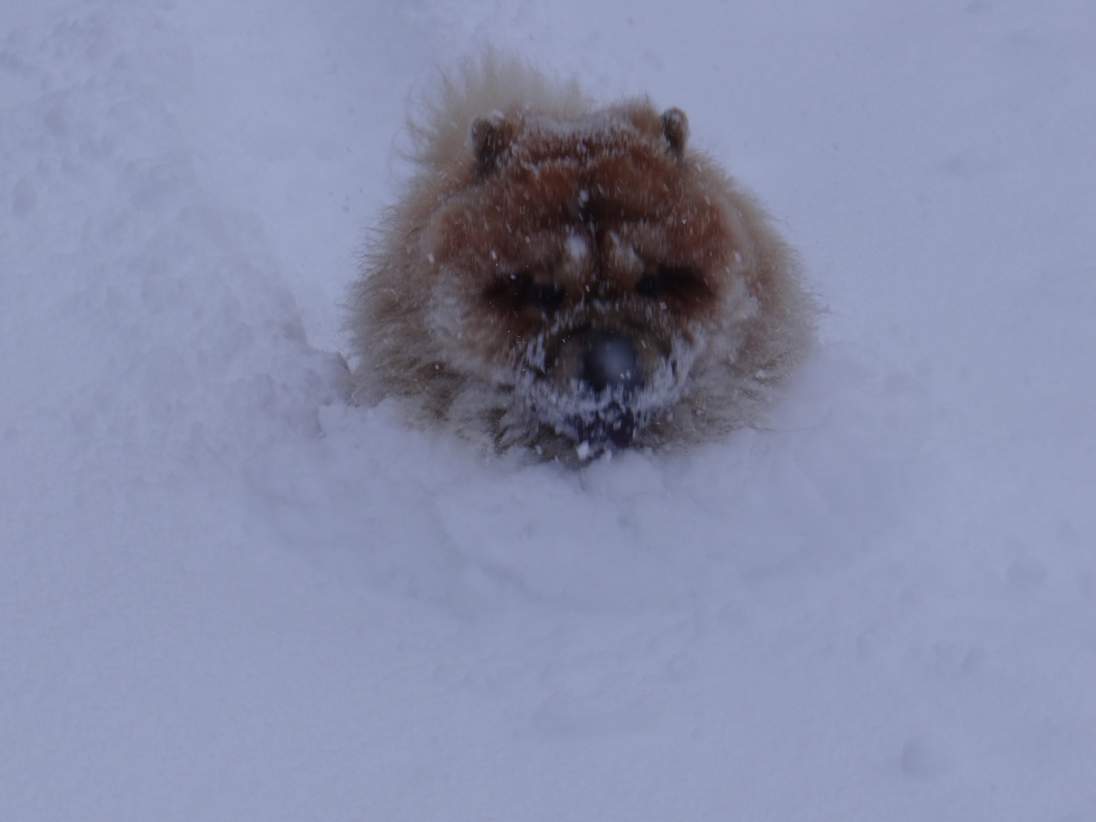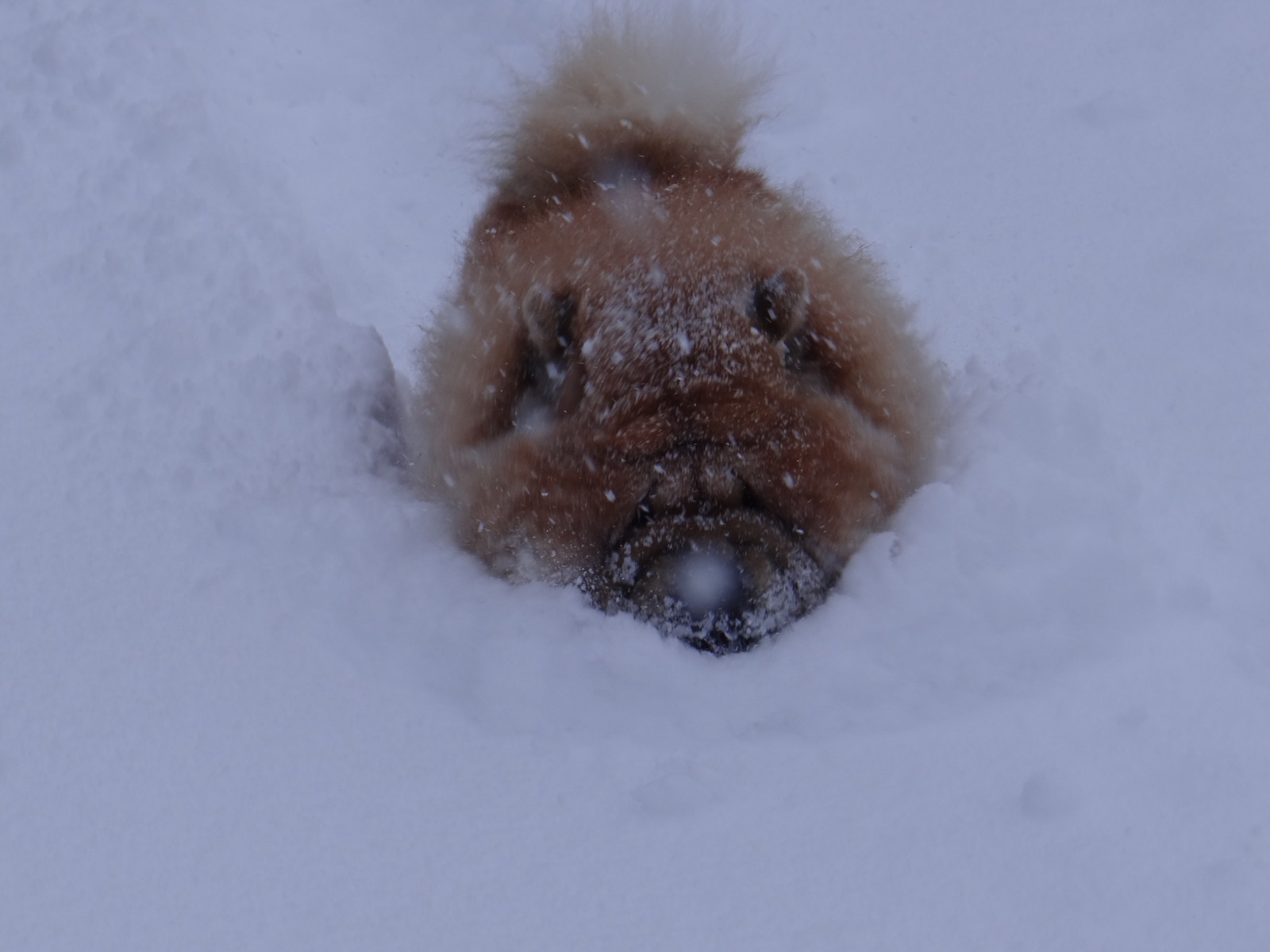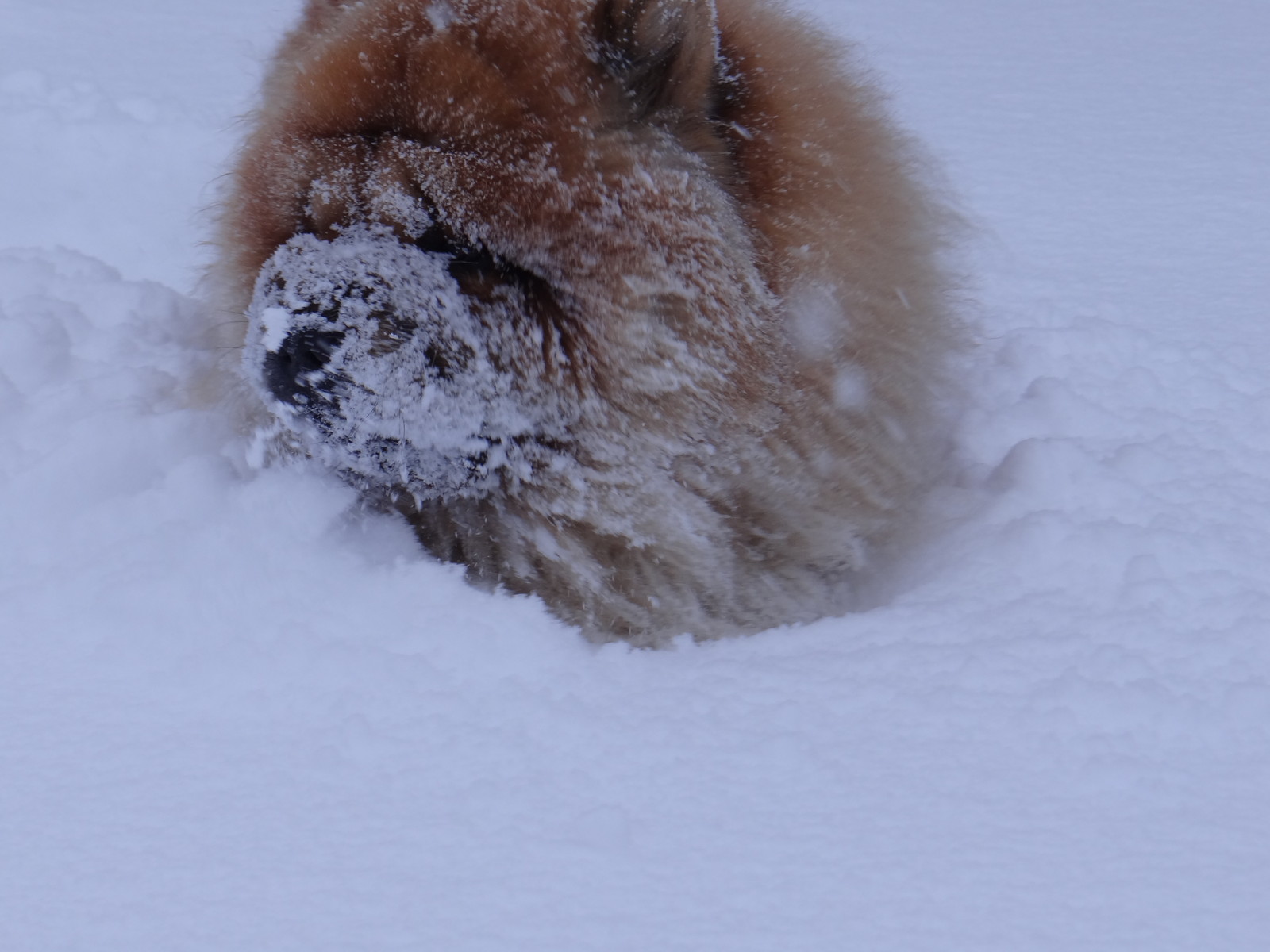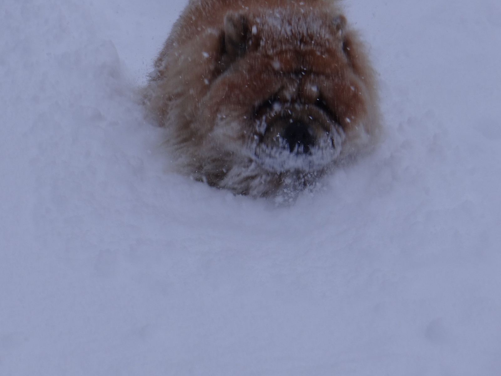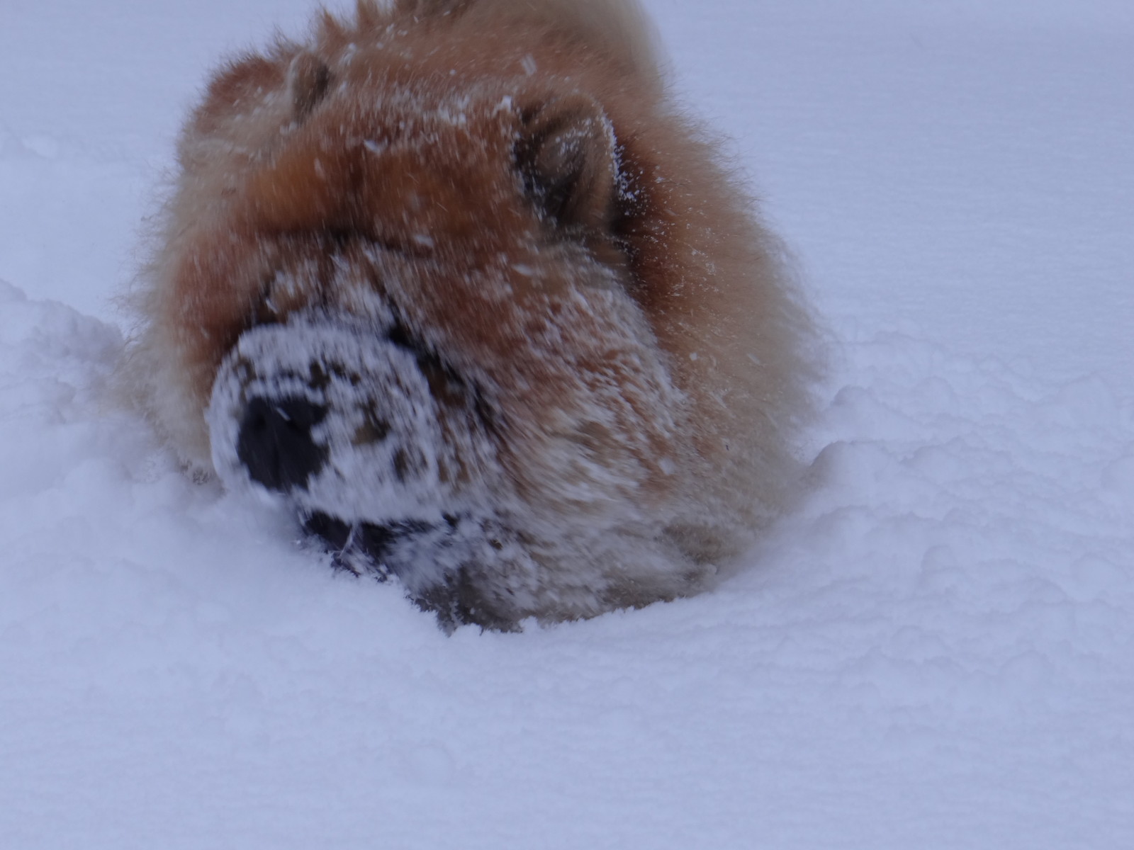 ふぃっちゃん、鼻の上の雪がなくなると、また乗せなおしています。