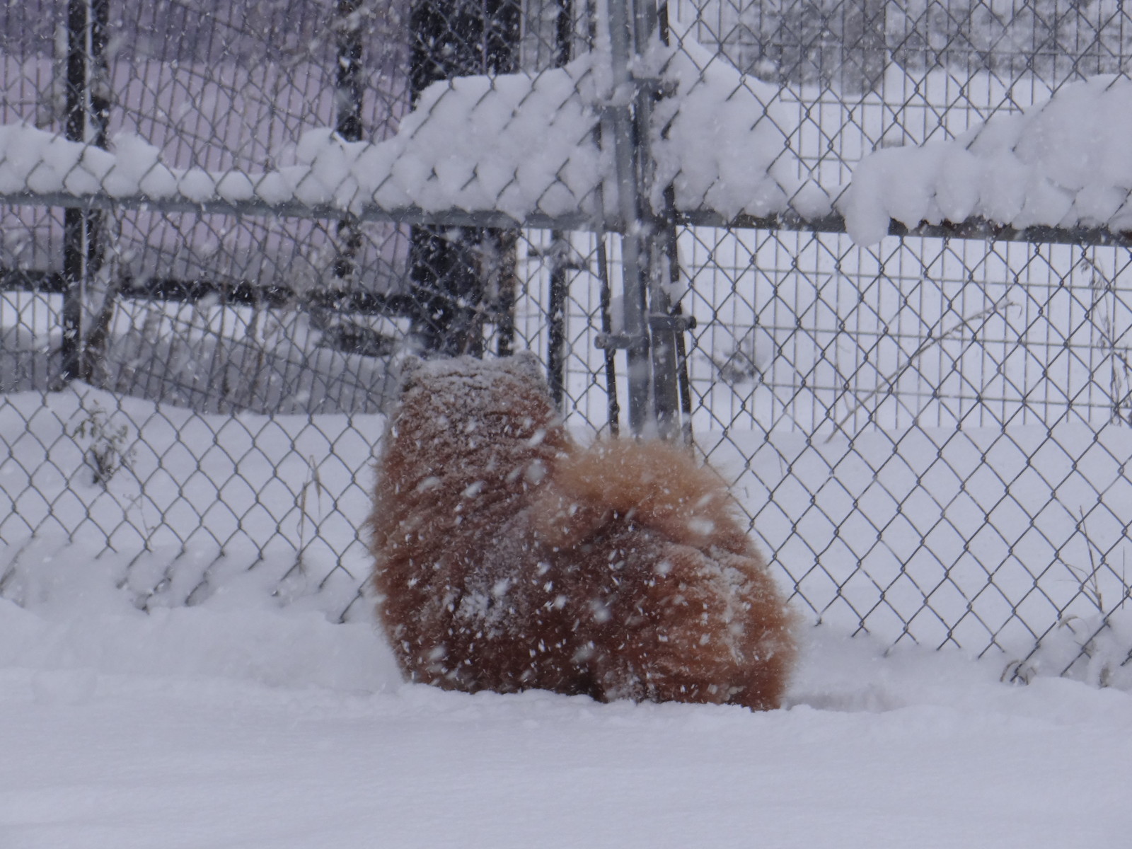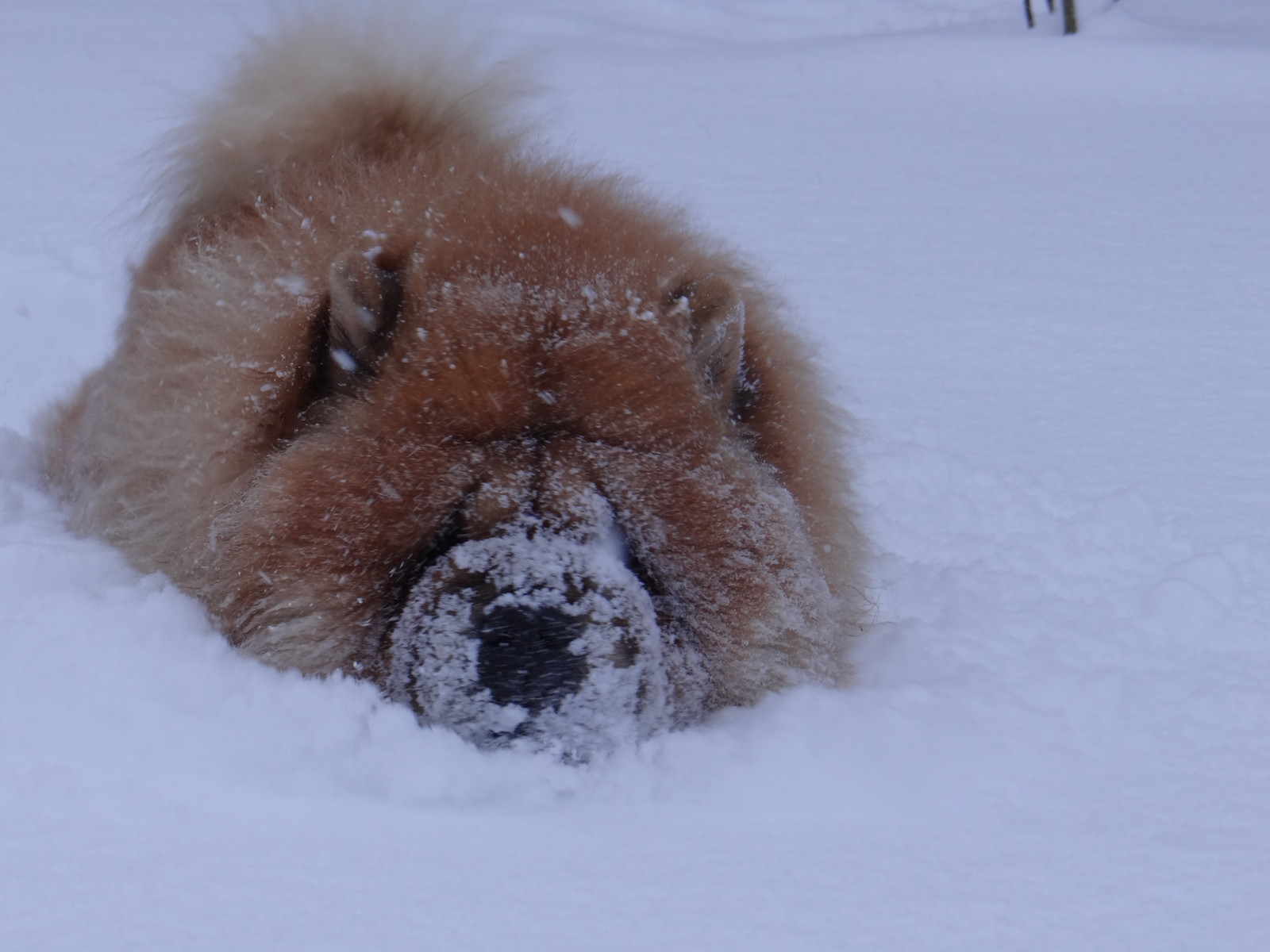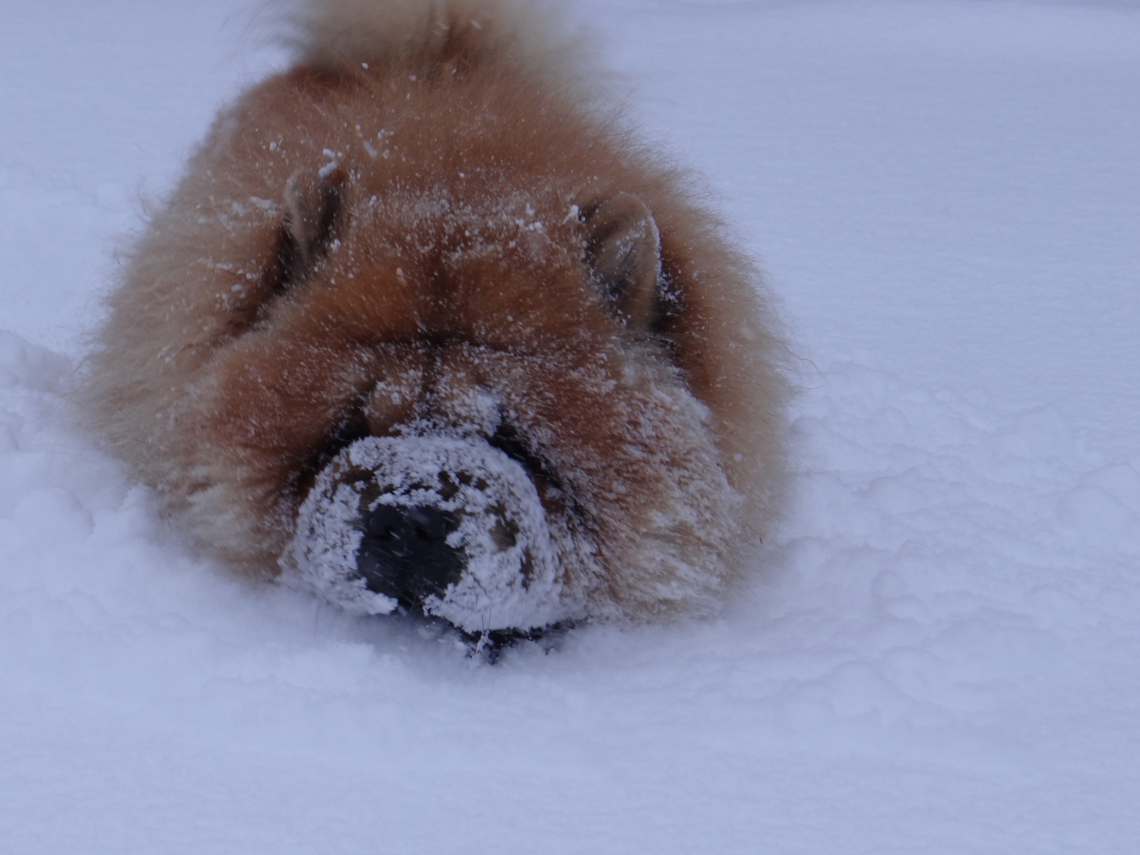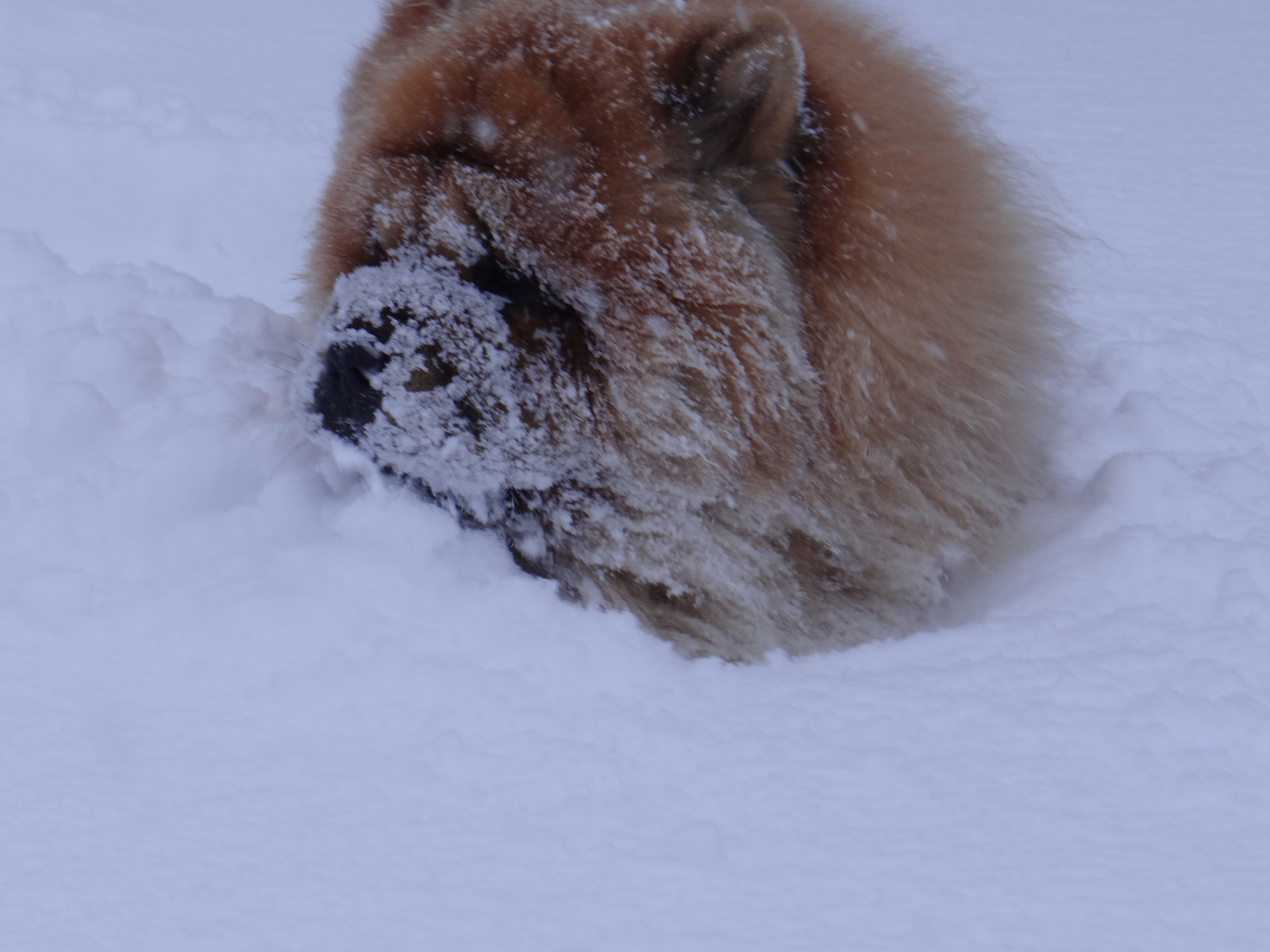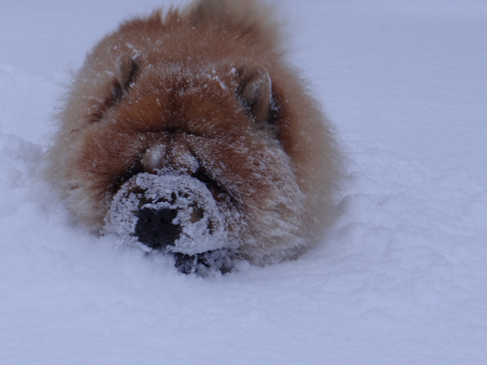ふぃっちゃん、鼻の上の雪がなくなると、また乗せなおしています。