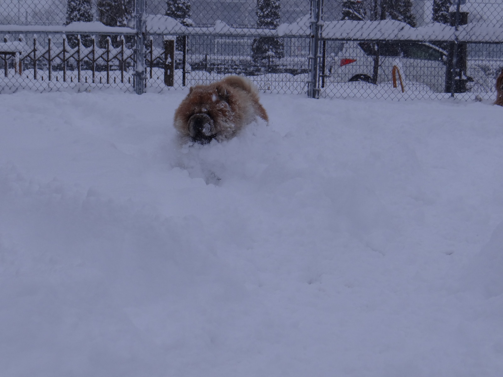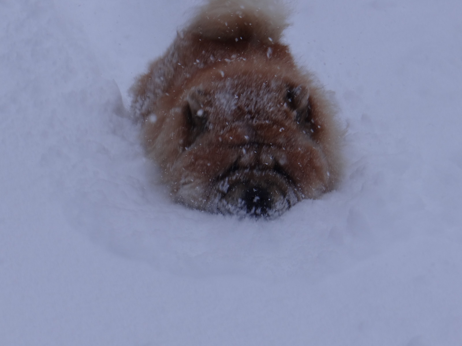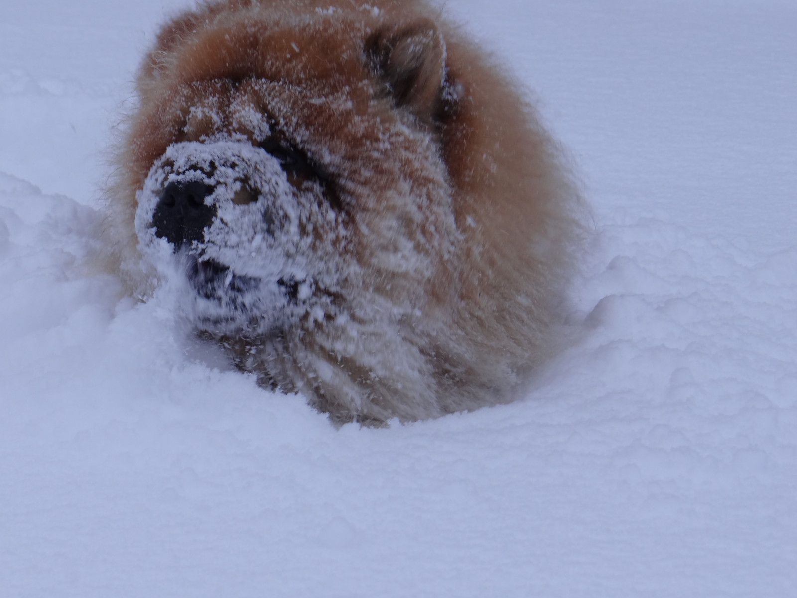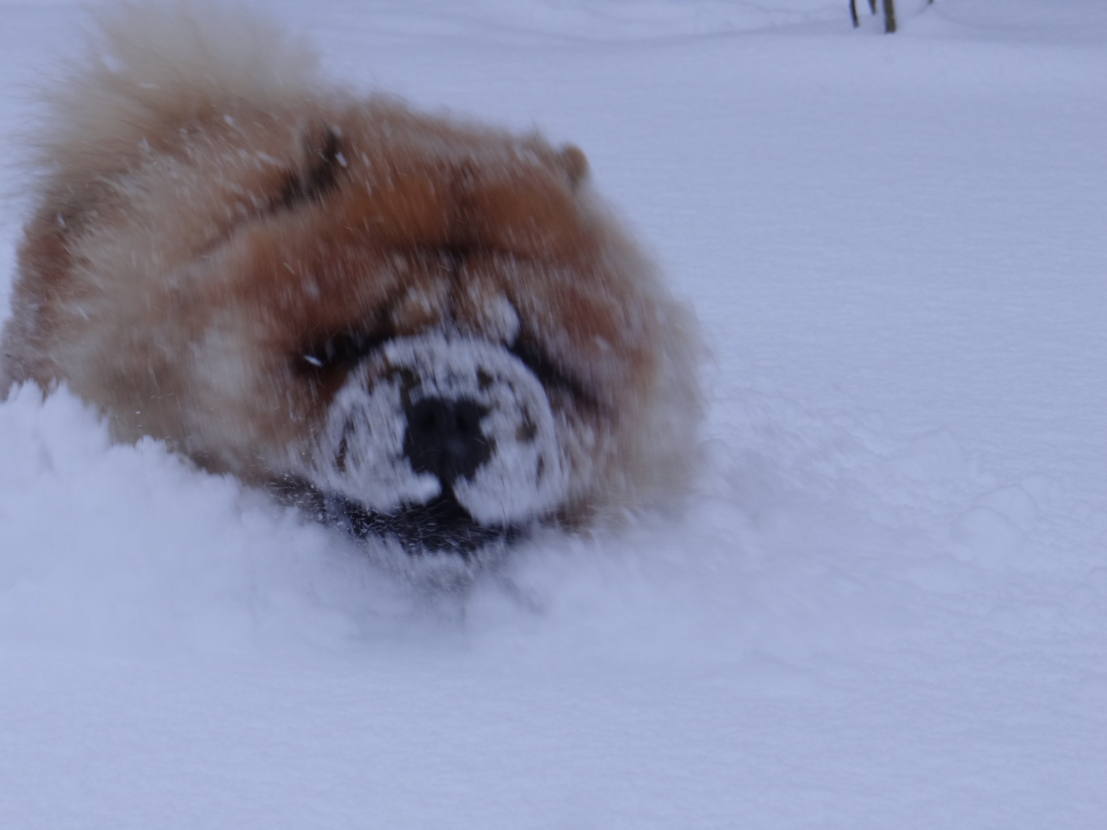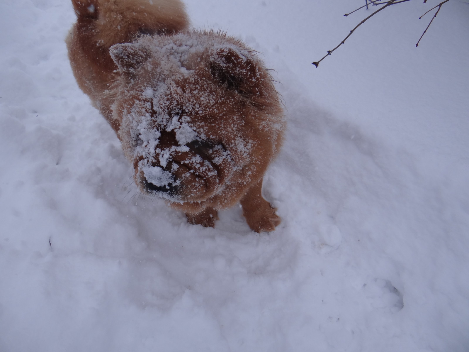 ふぃっちゃん、鼻の上の雪がなくなると、また乗せなおしています。