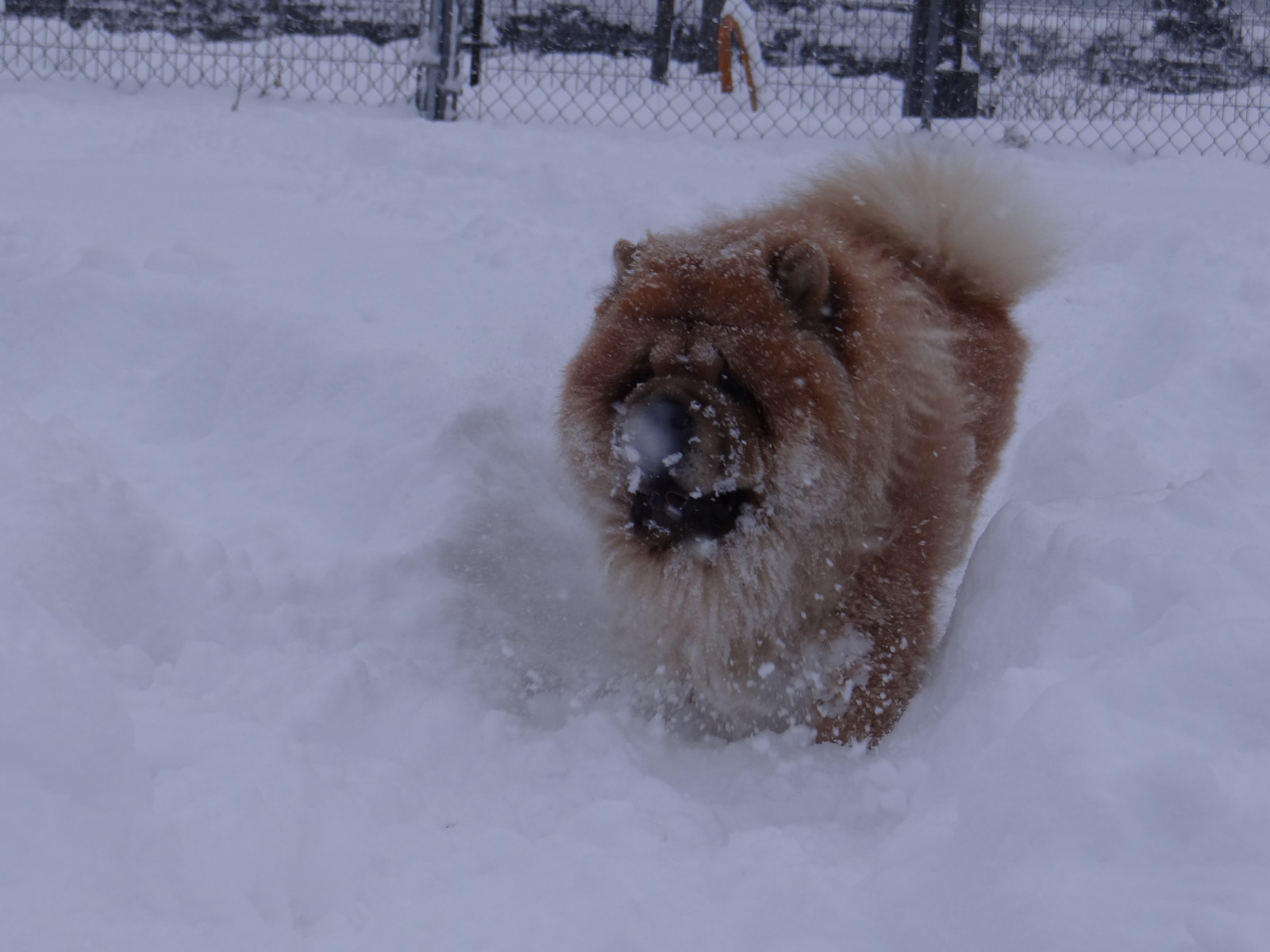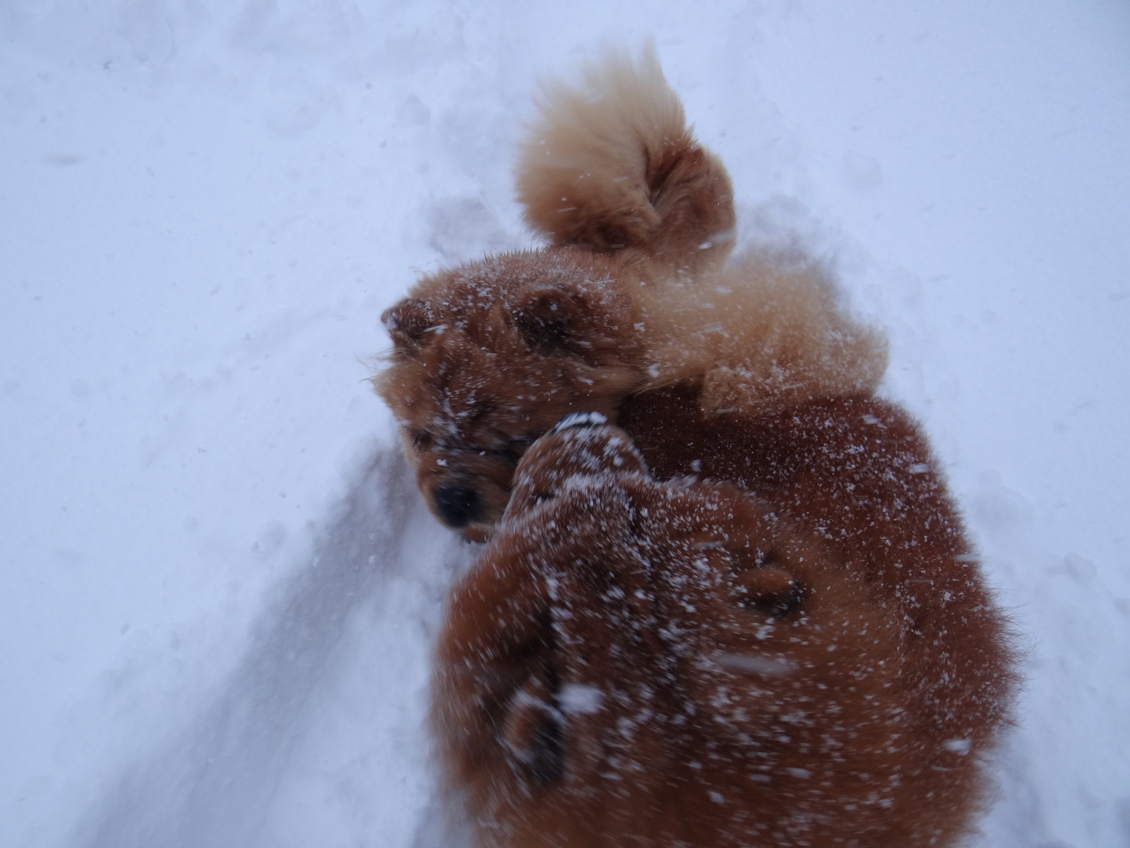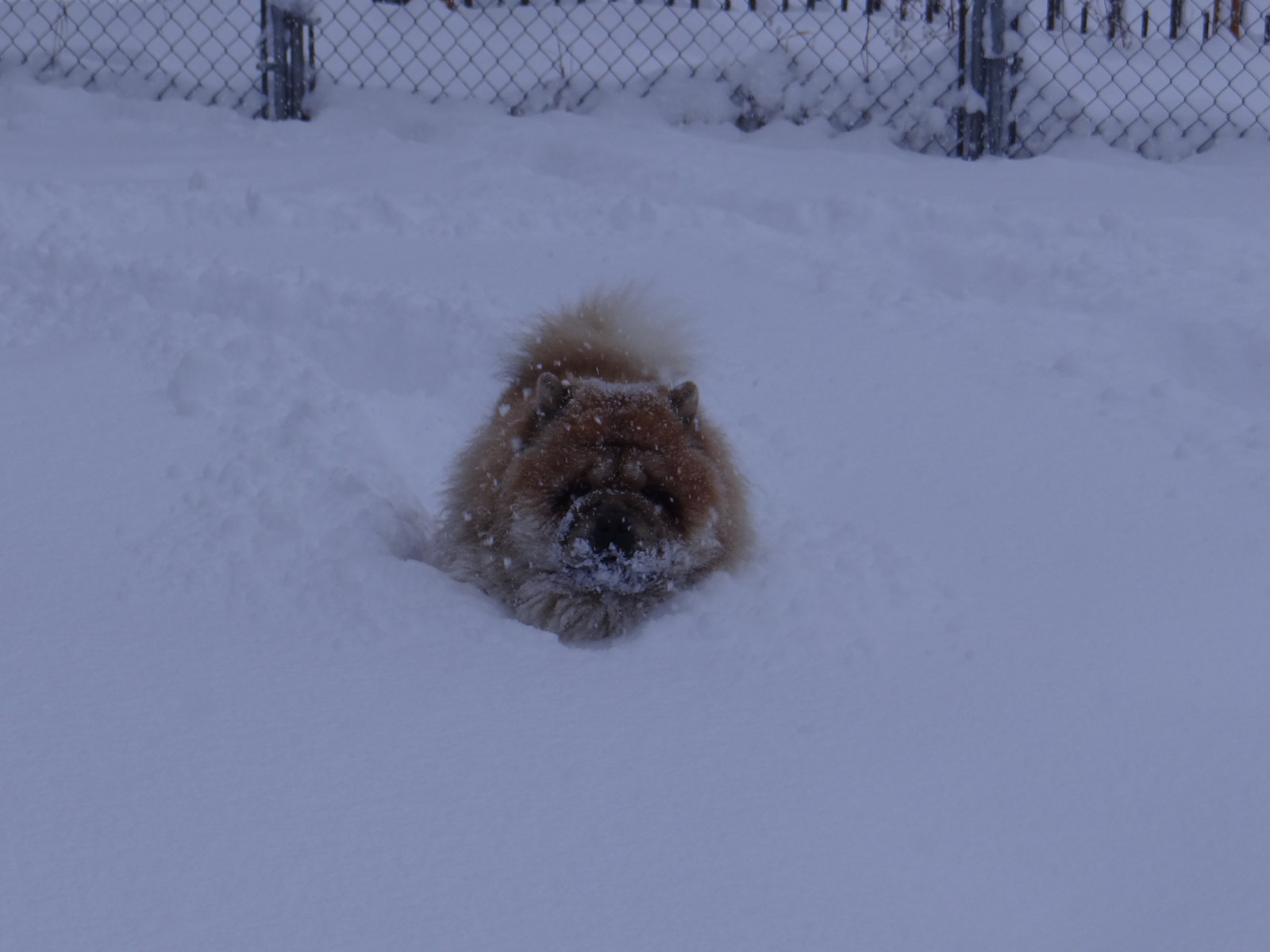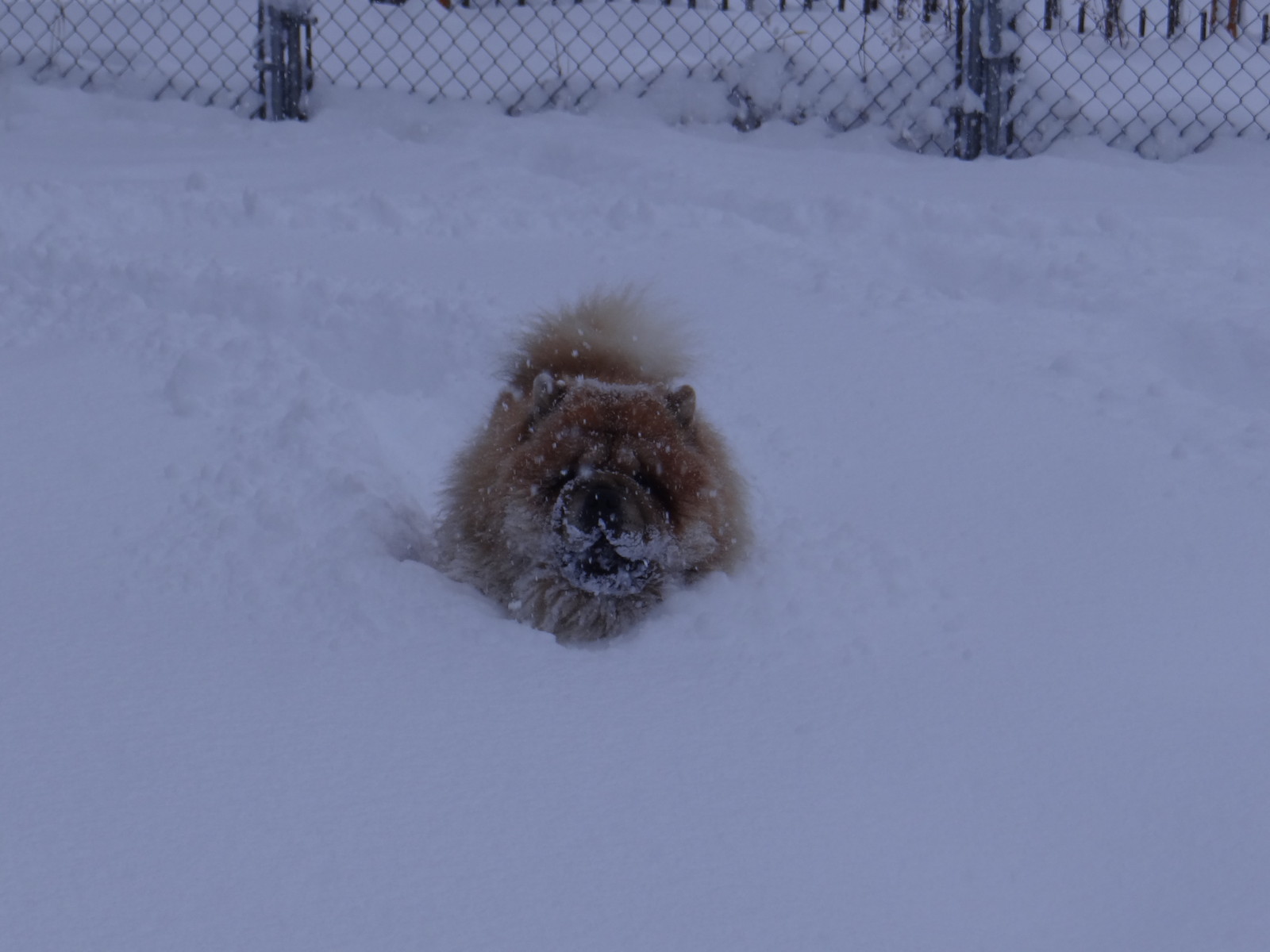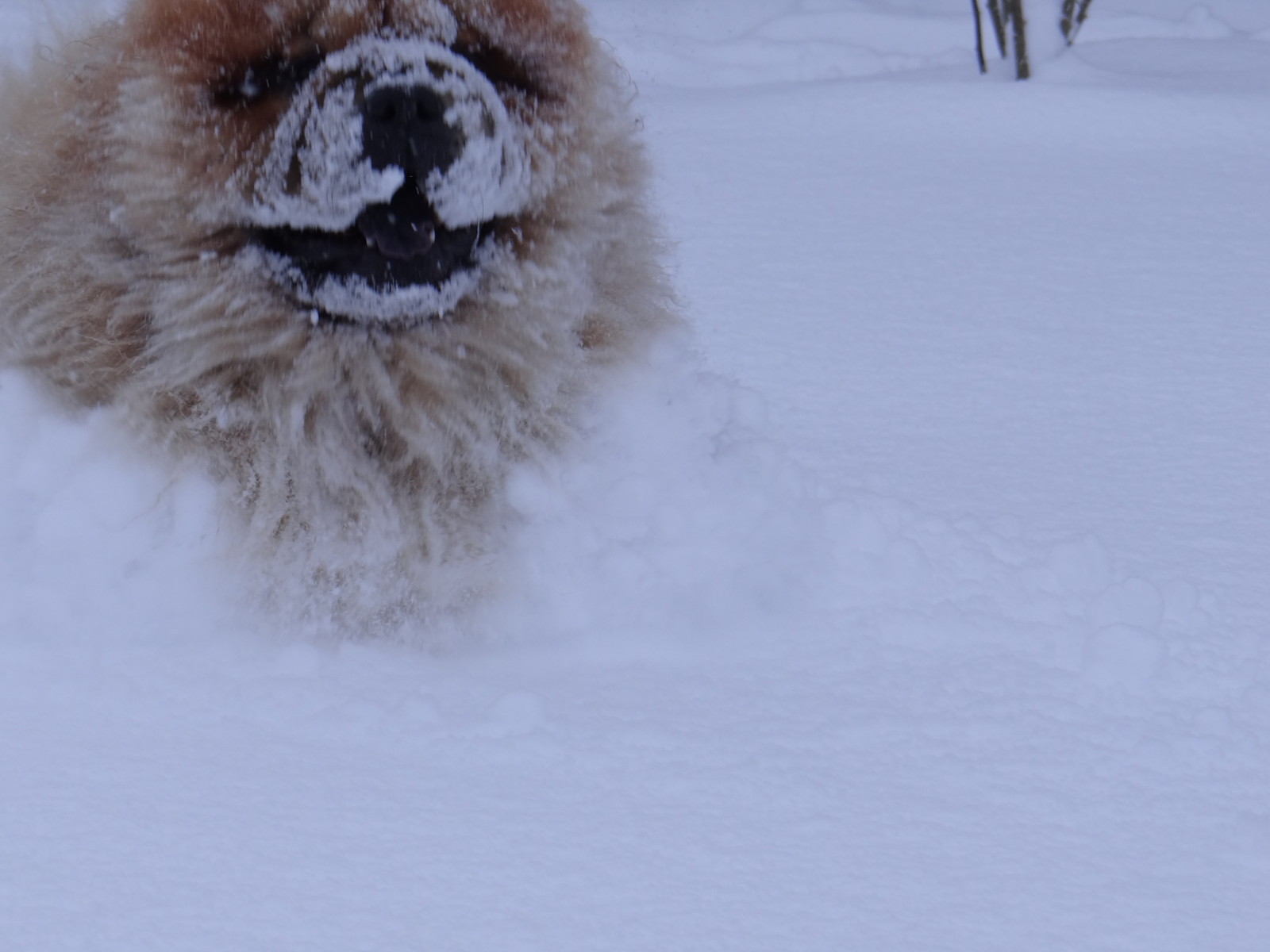 ふぃっちゃん、鼻の上の雪がなくなると、また乗せなおしています。