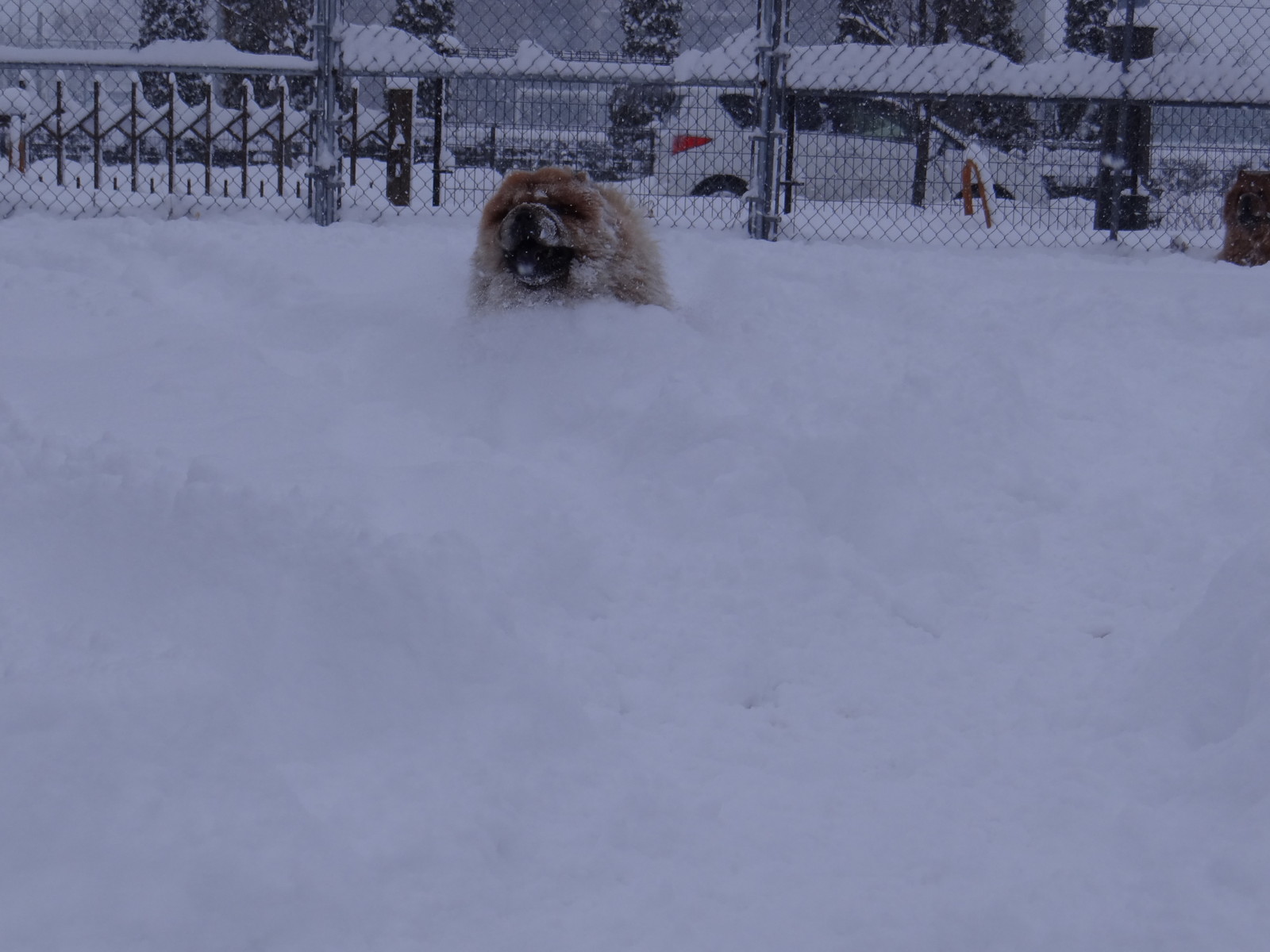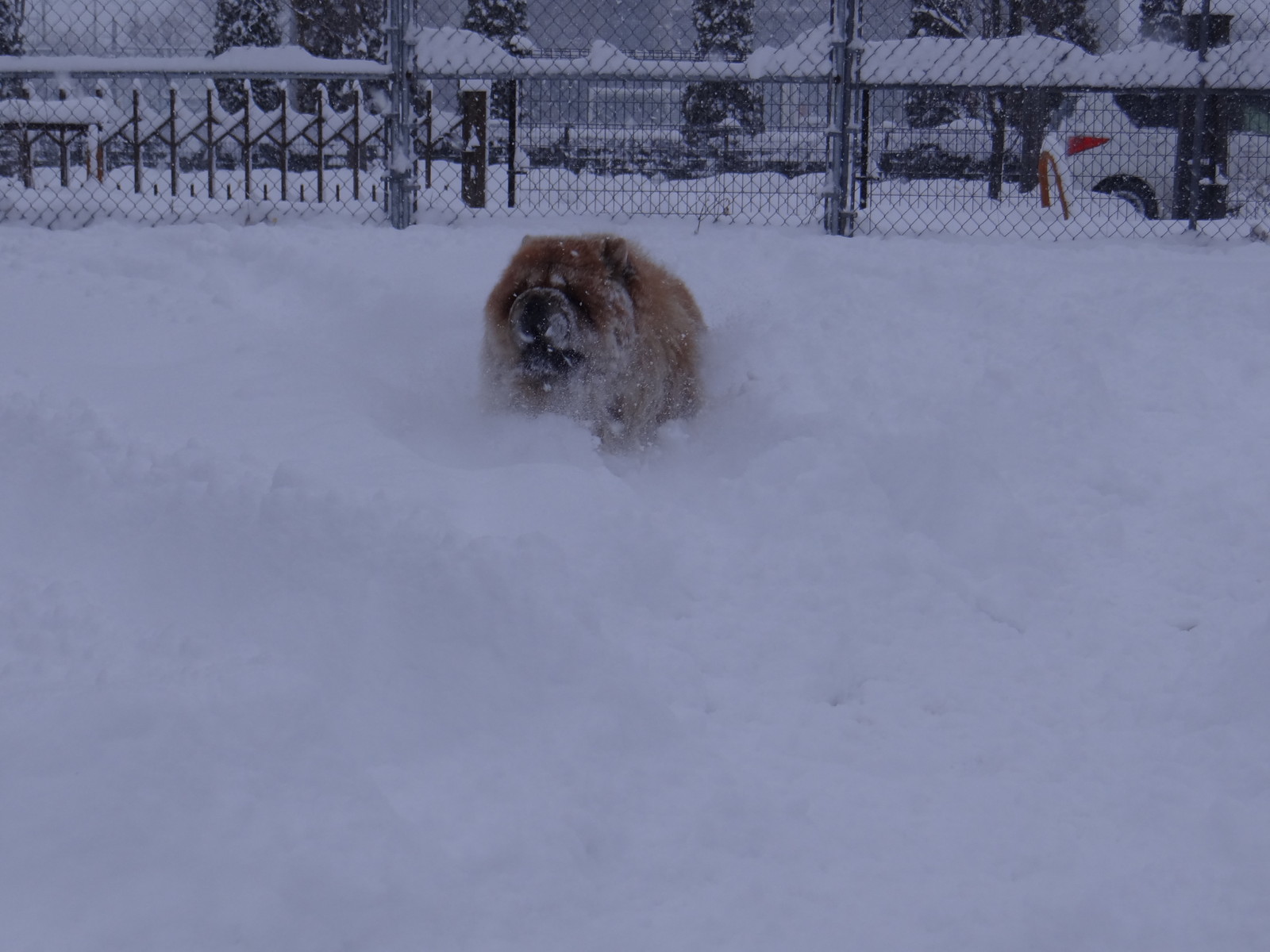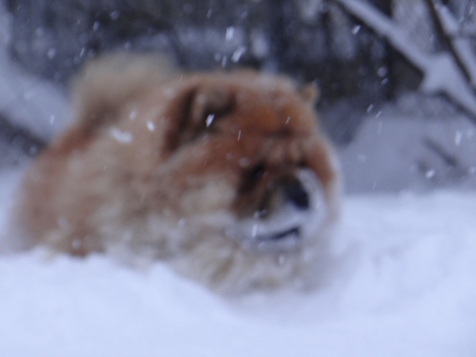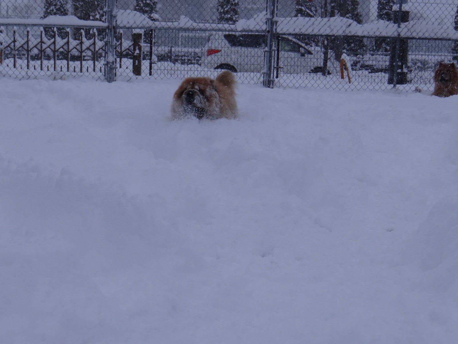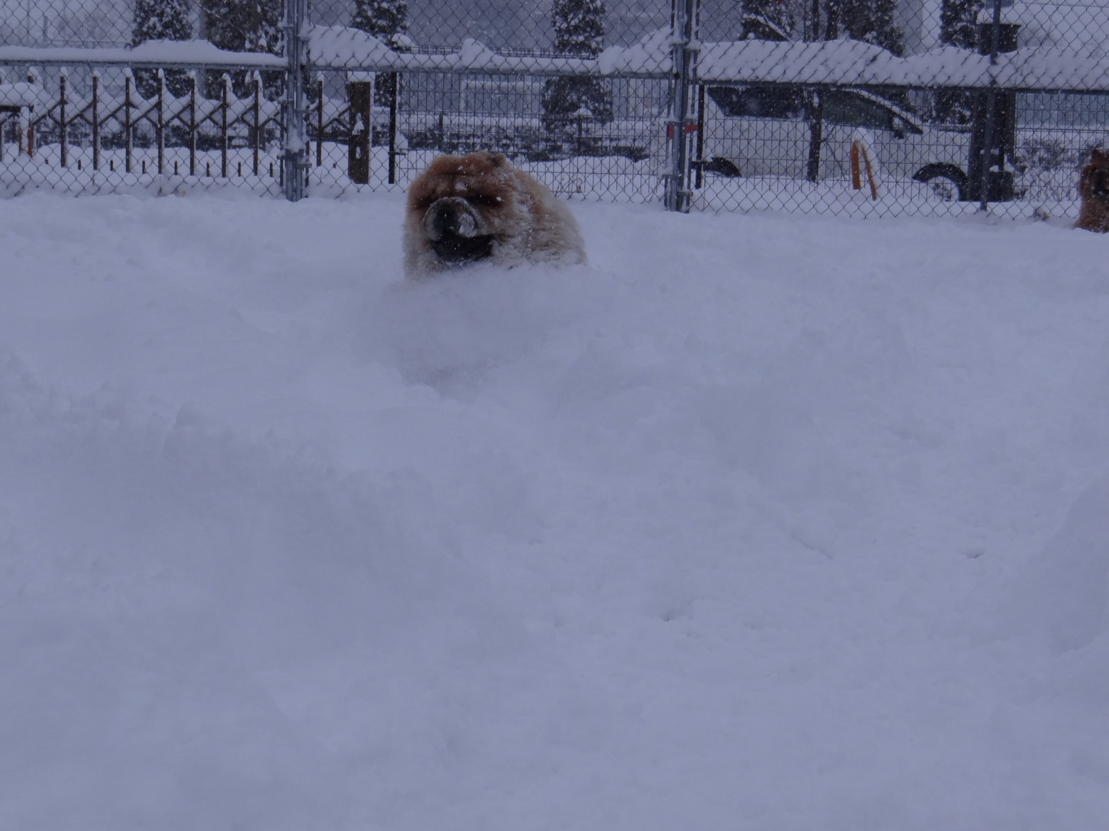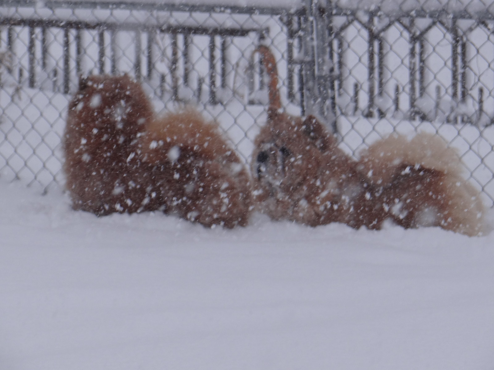 ふぃっちゃん、鼻の上の雪がなくなると、また乗せなおしています。
