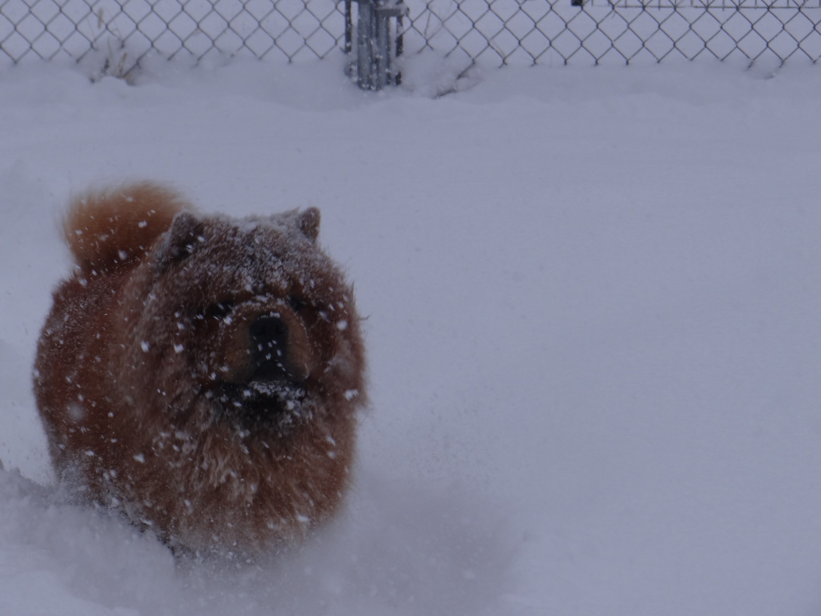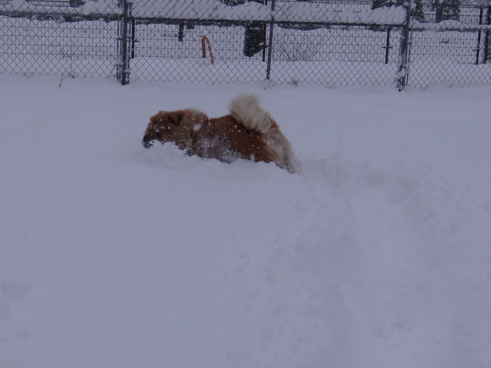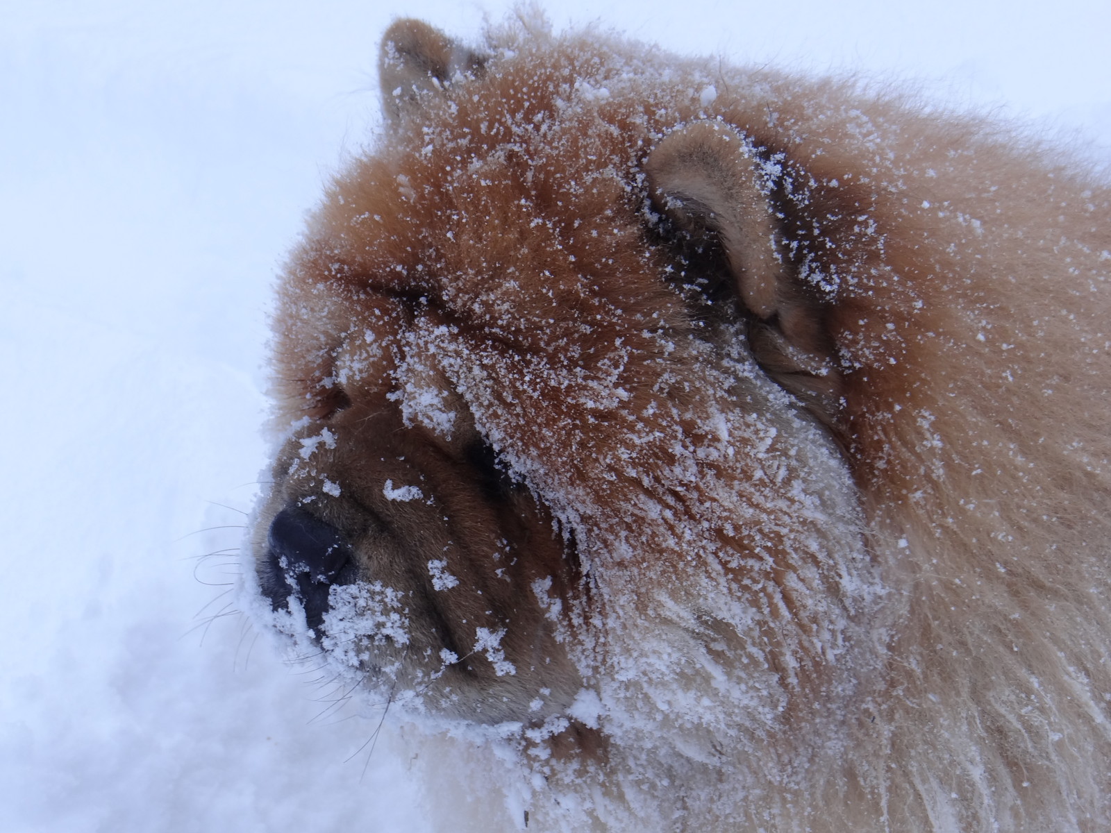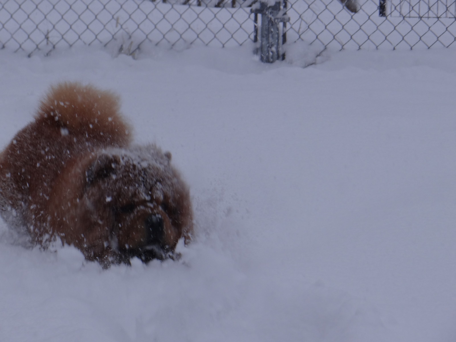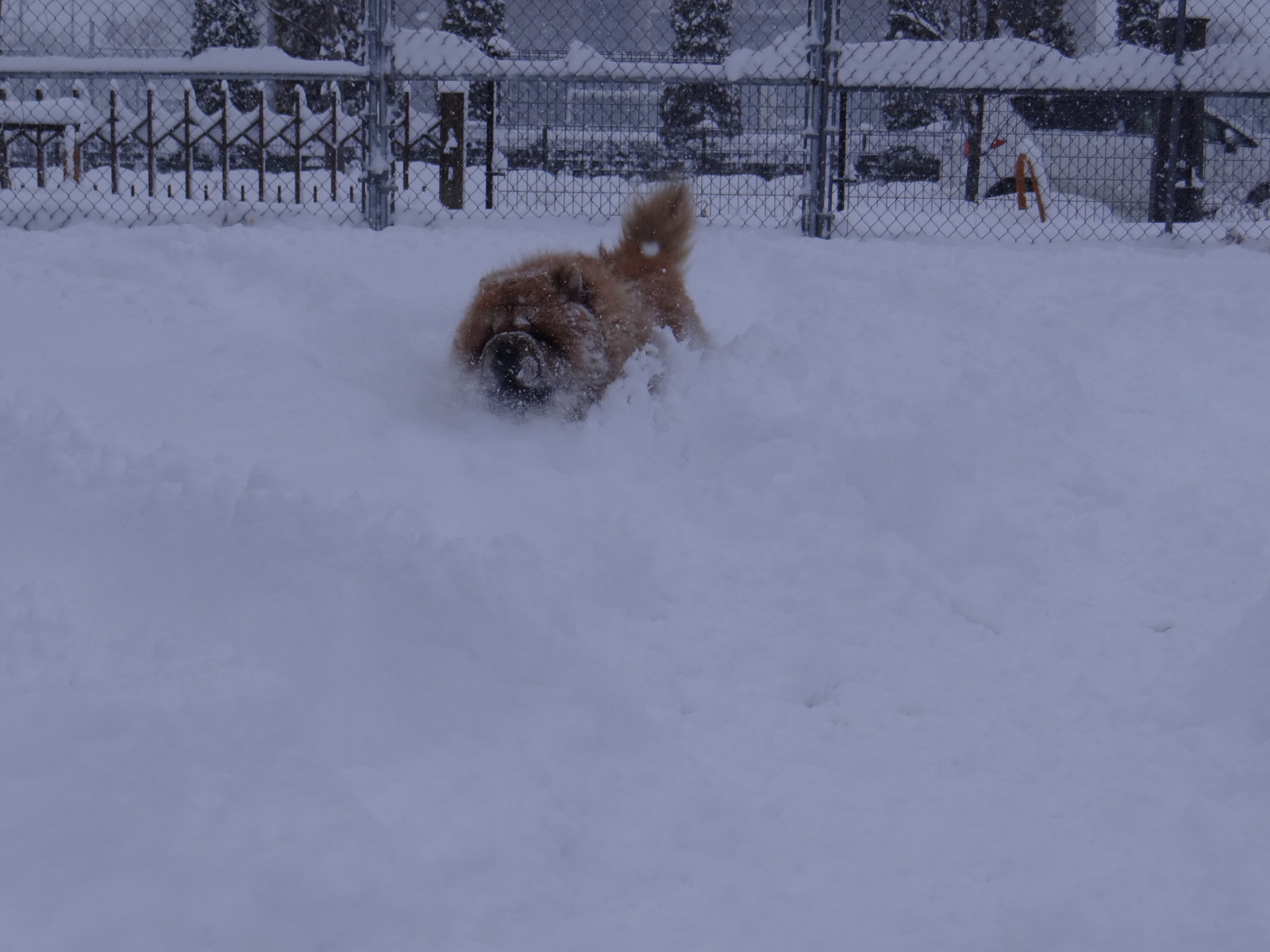 ふぃっちゃん、鼻の上の雪がなくなると、また乗せなおしています。