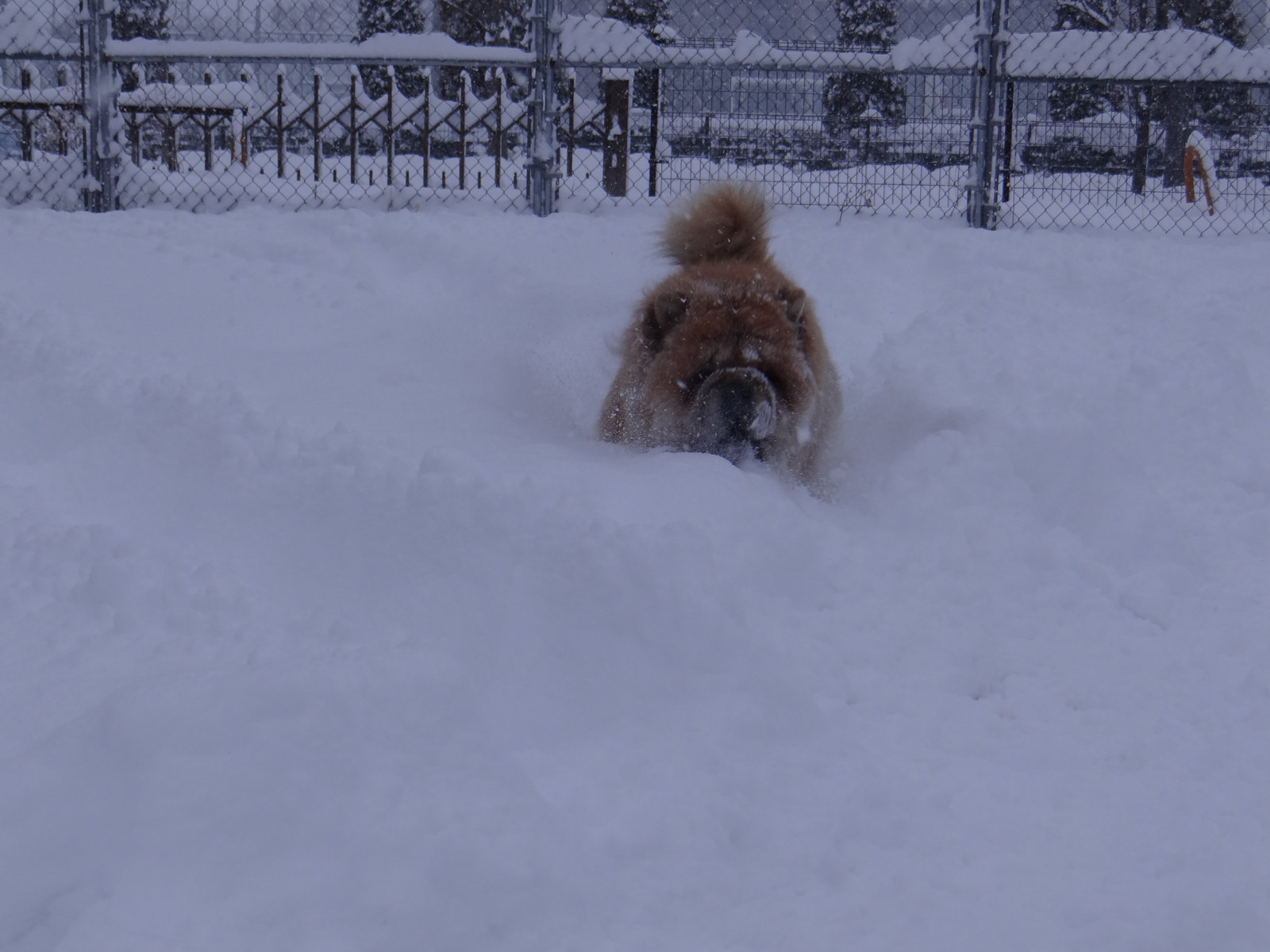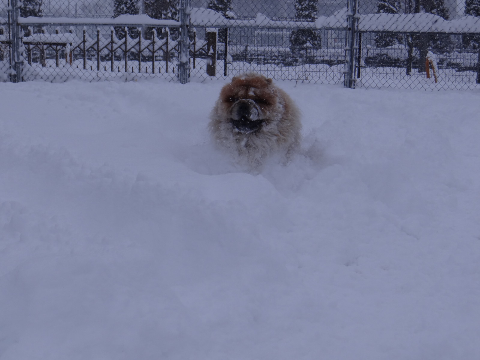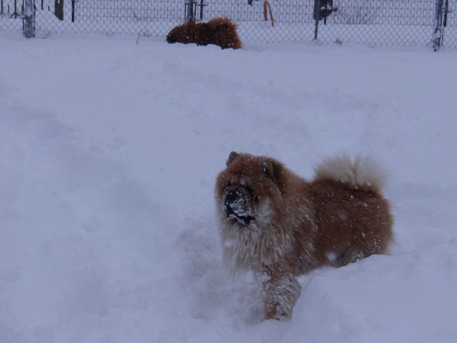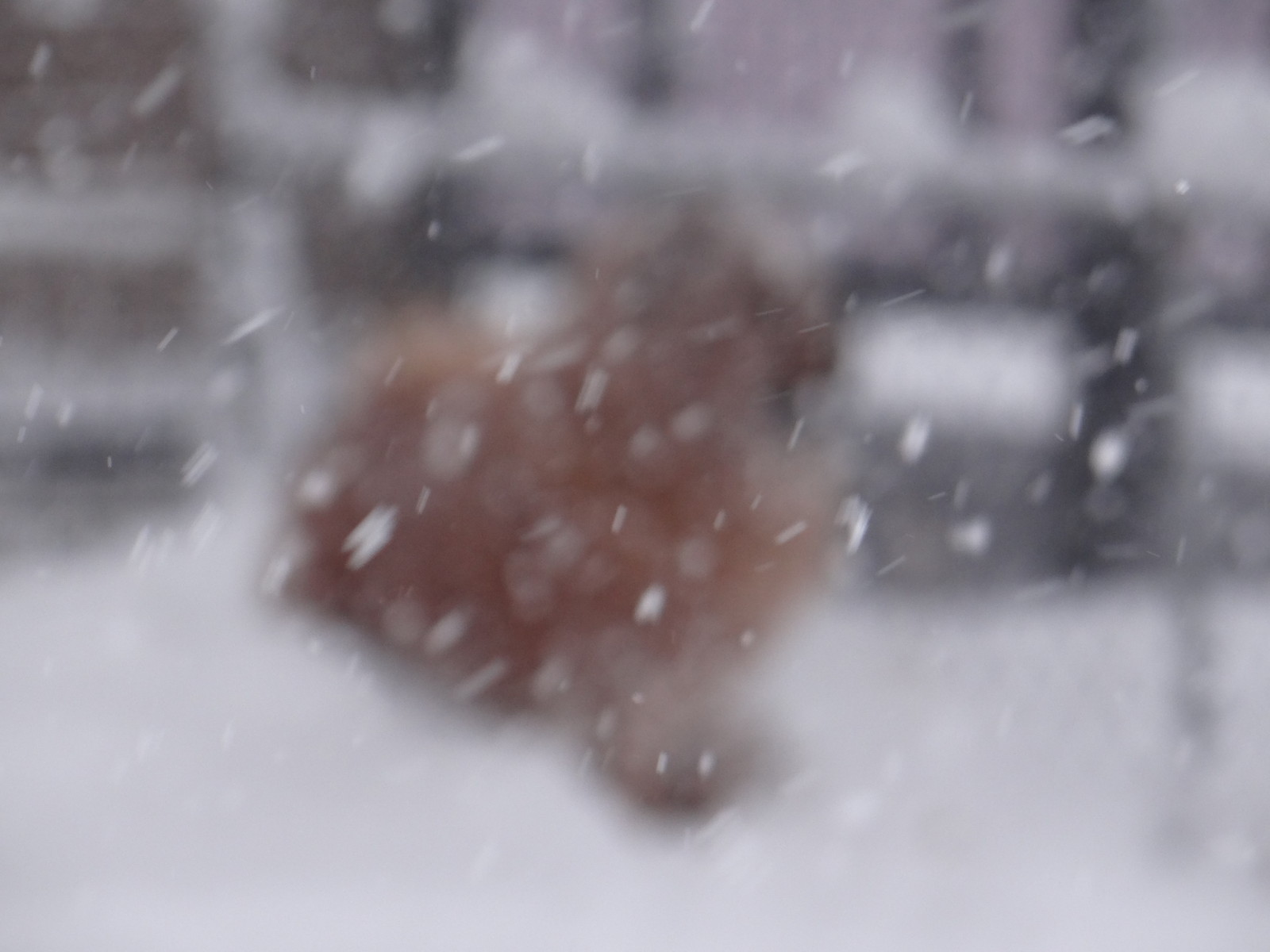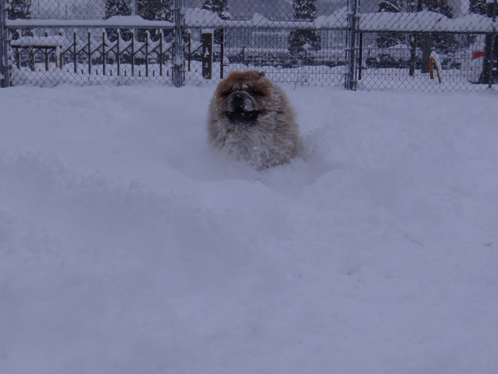 ふぃっちゃん、鼻の上の雪がなくなると、また乗せなおしています。