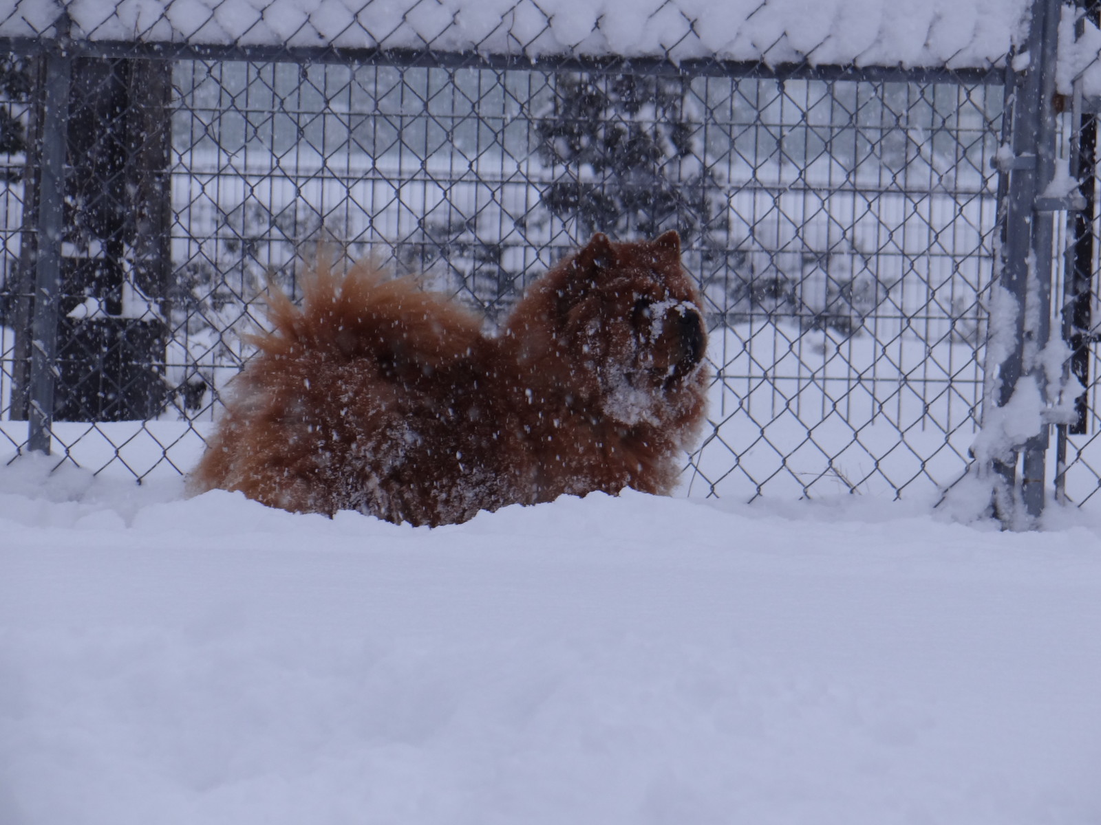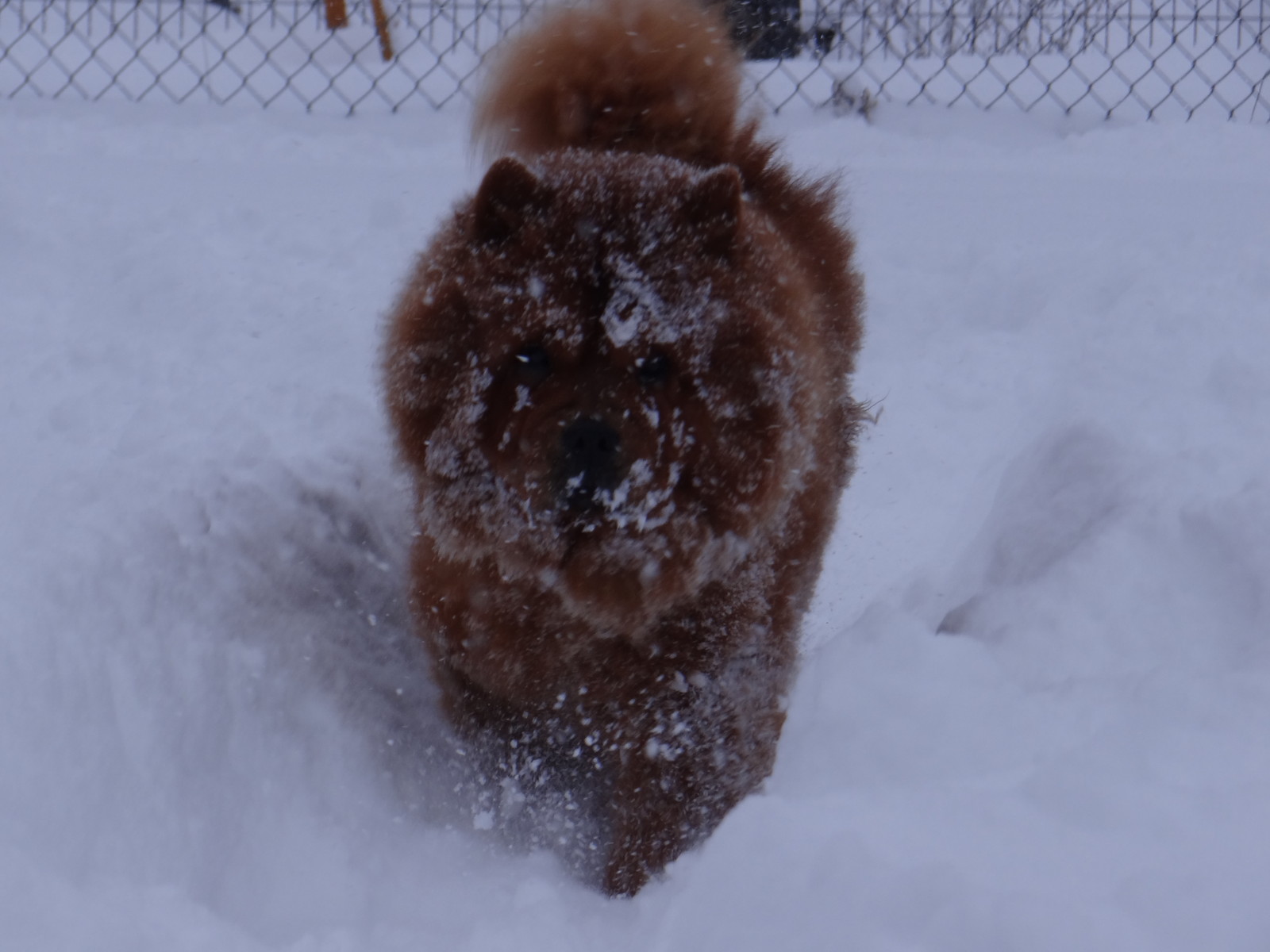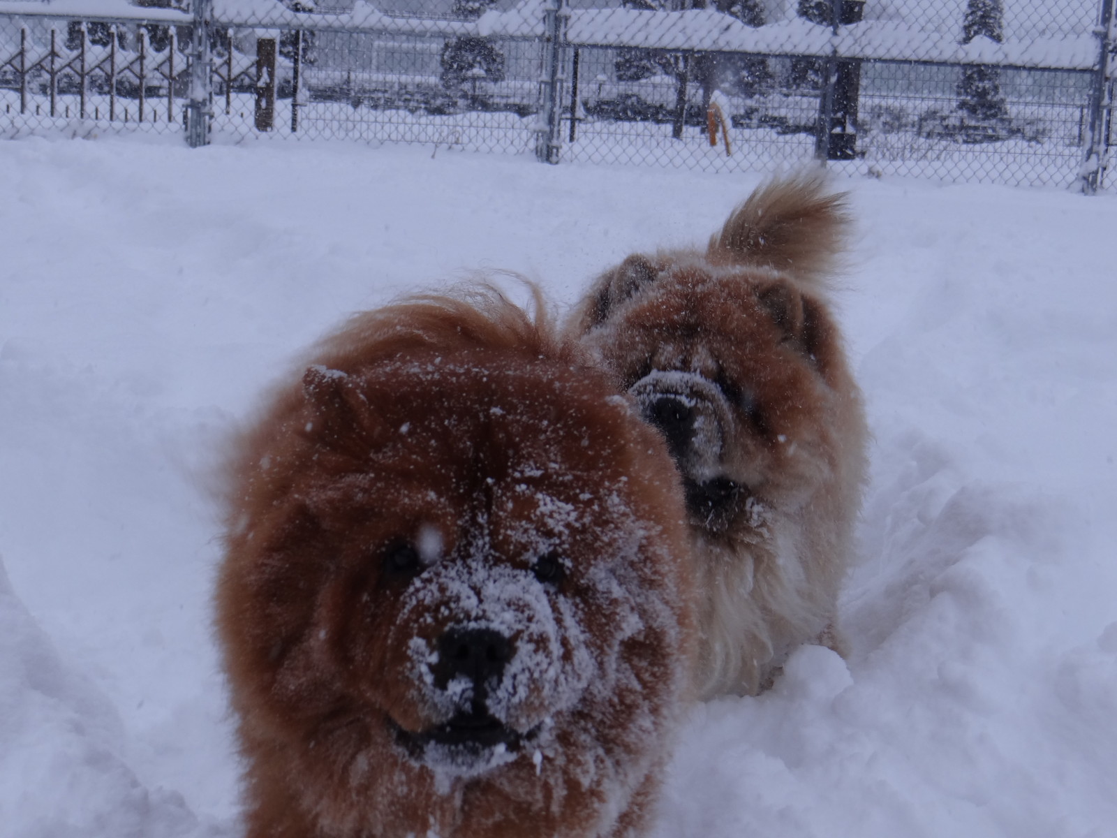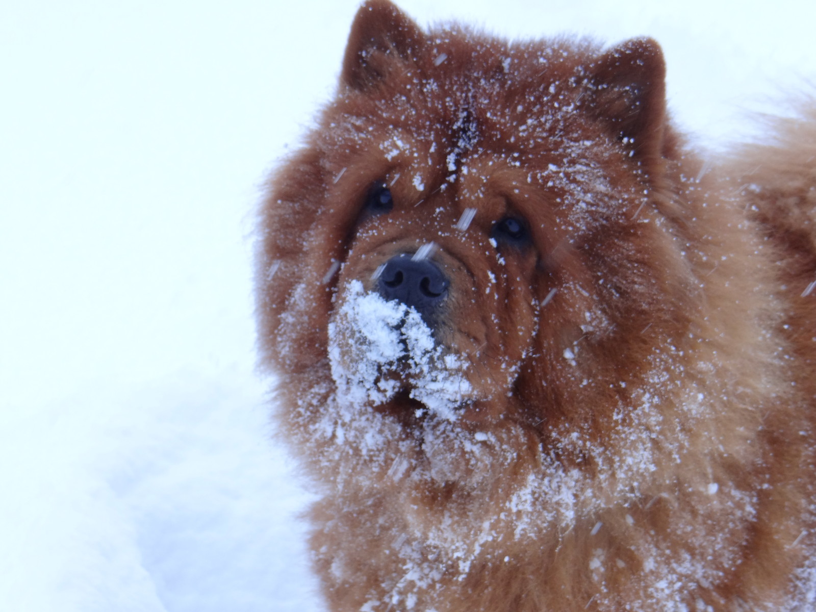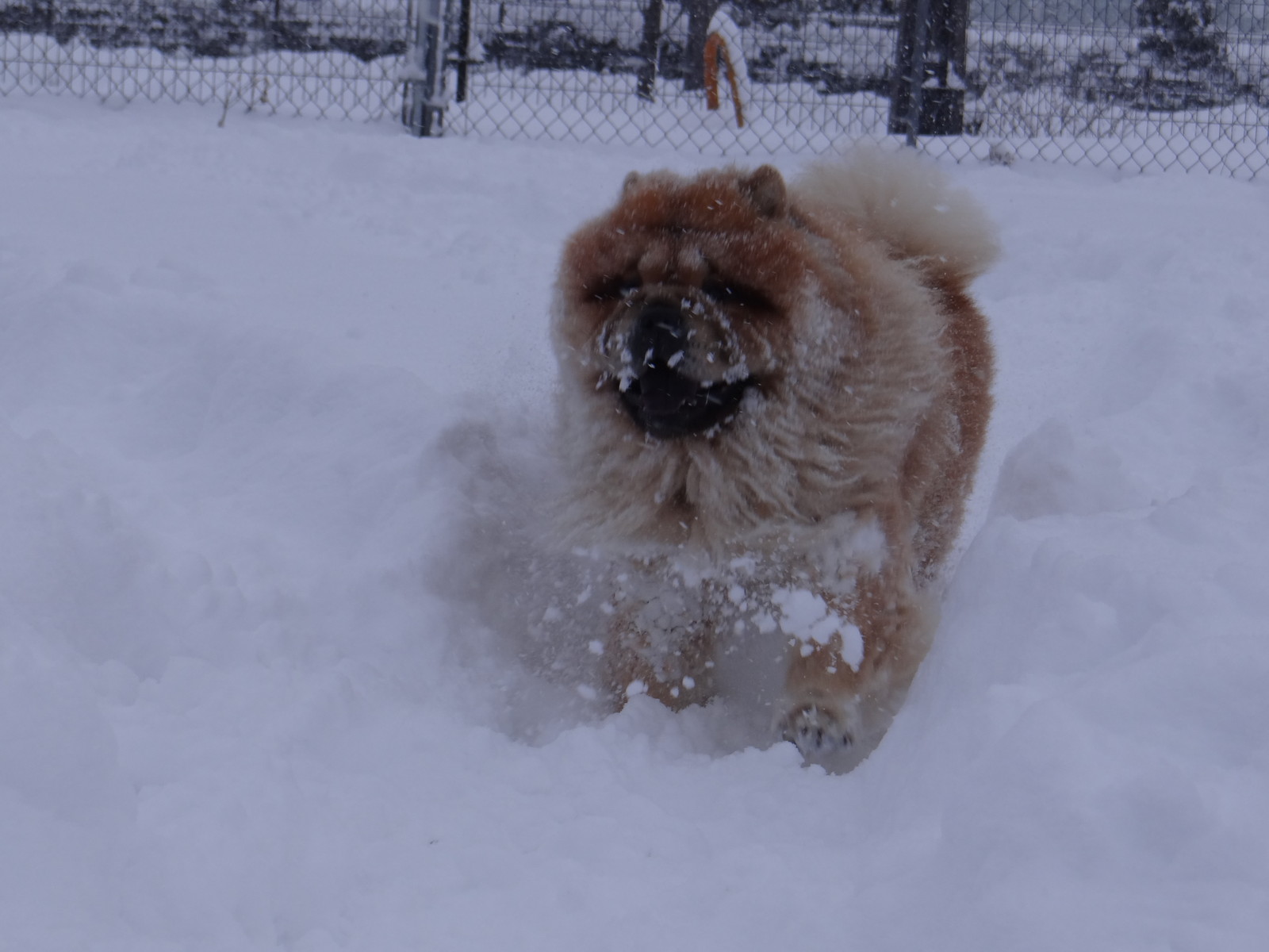 ふぃっちゃん、鼻の上の雪がなくなると、また乗せなおしています。