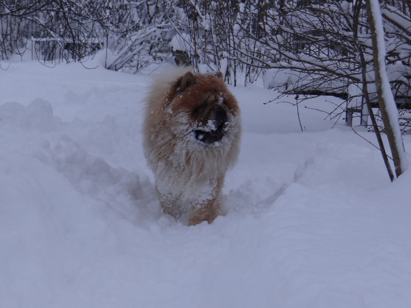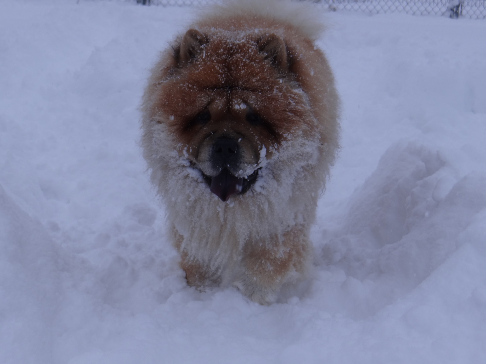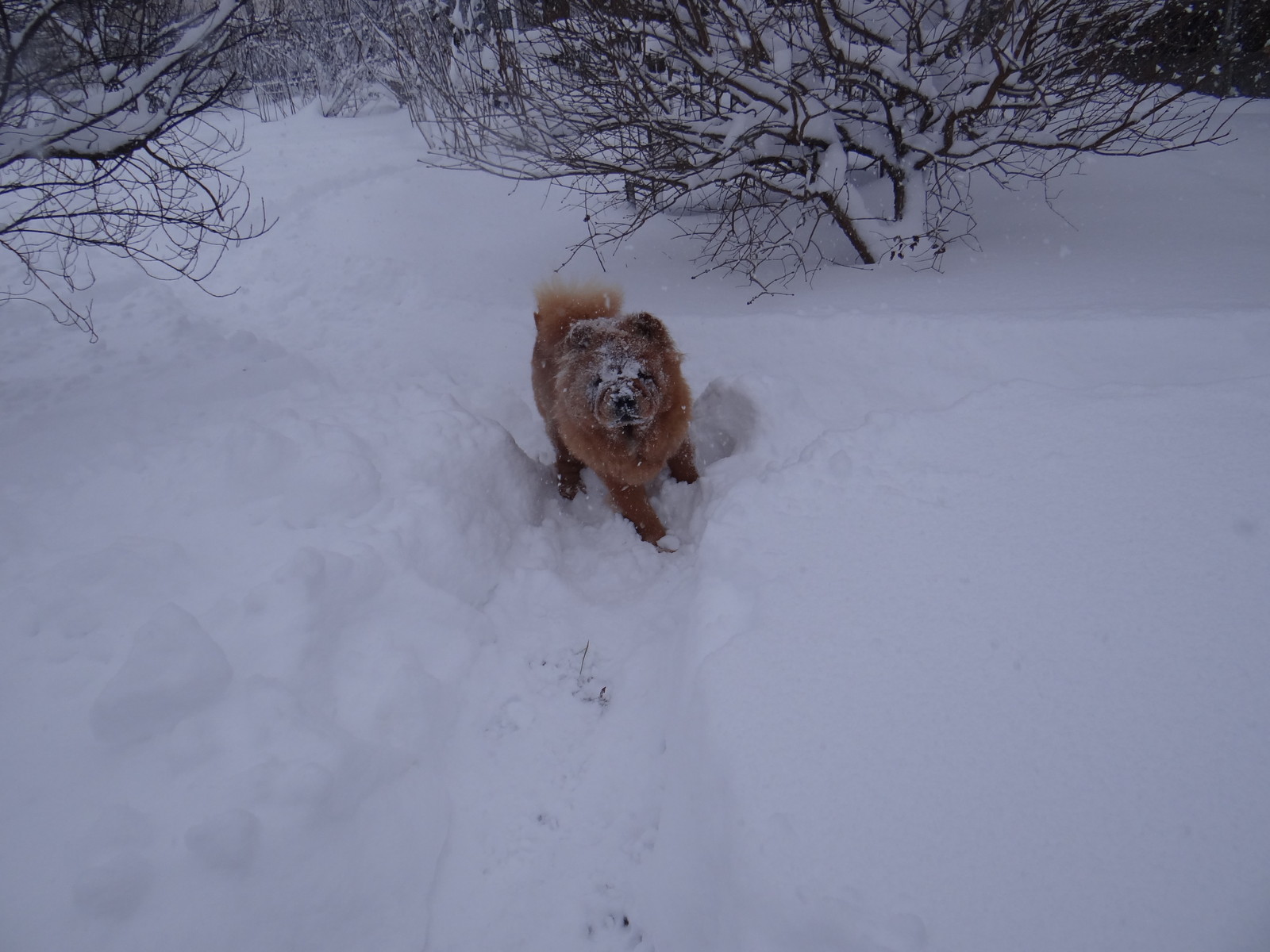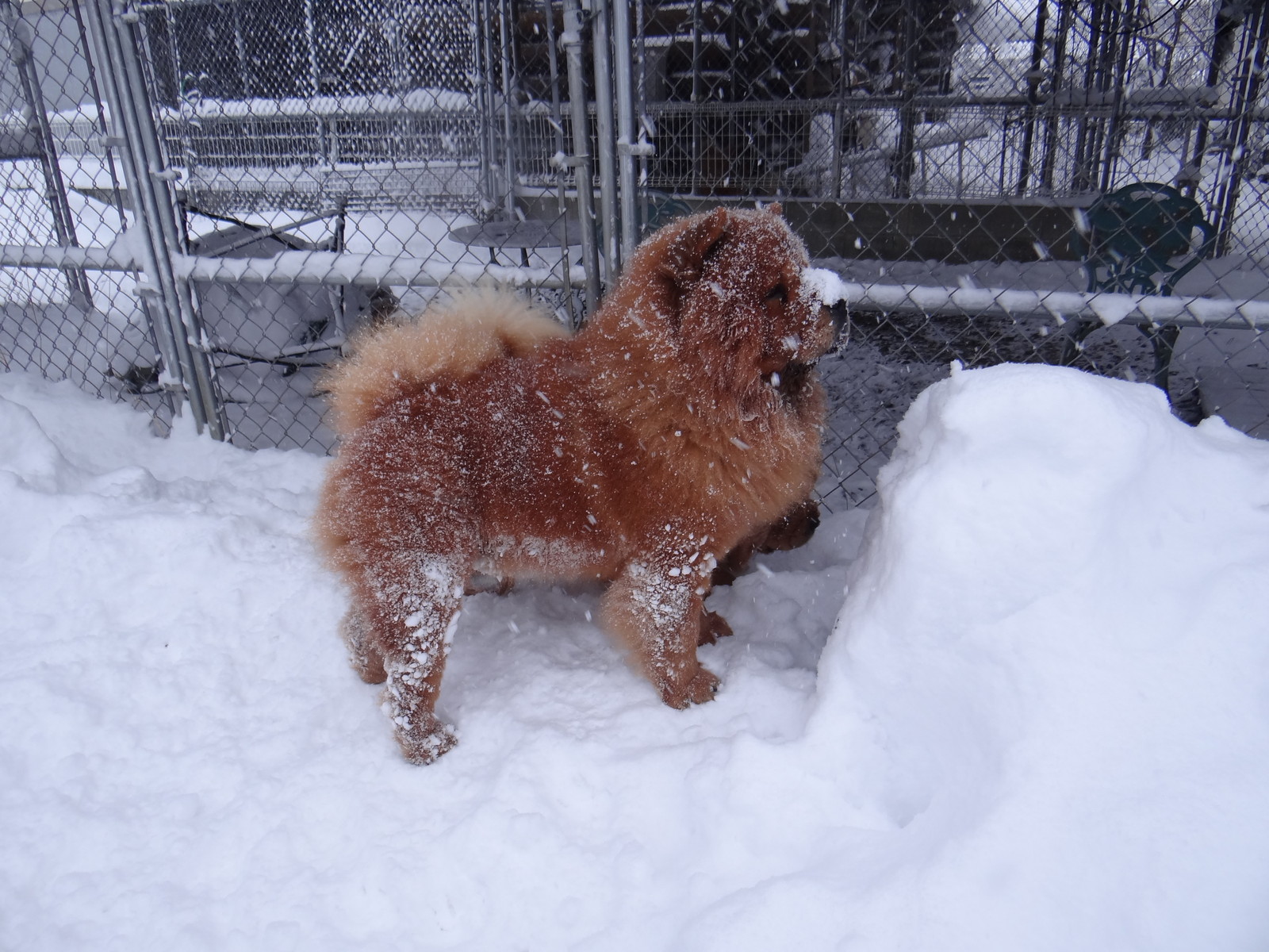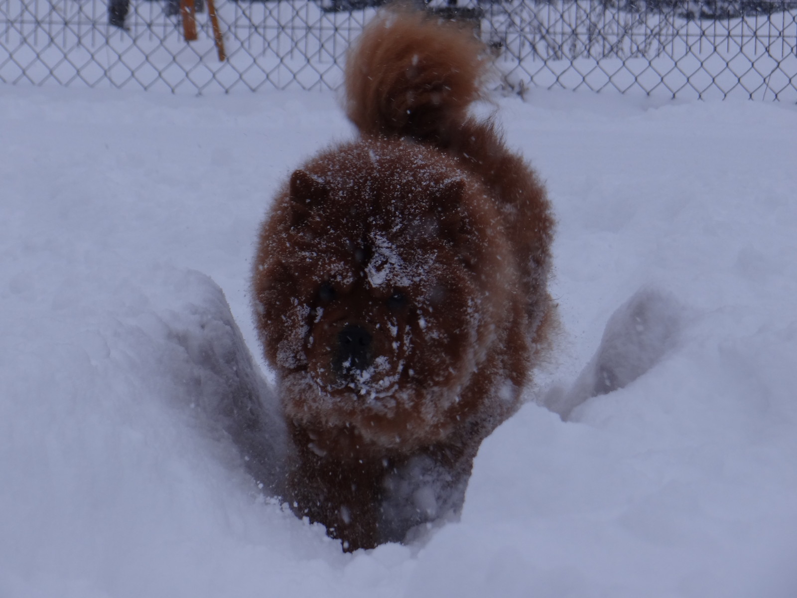 ふぃっちゃん、鼻の上の雪がなくなると、また乗せなおしています。
