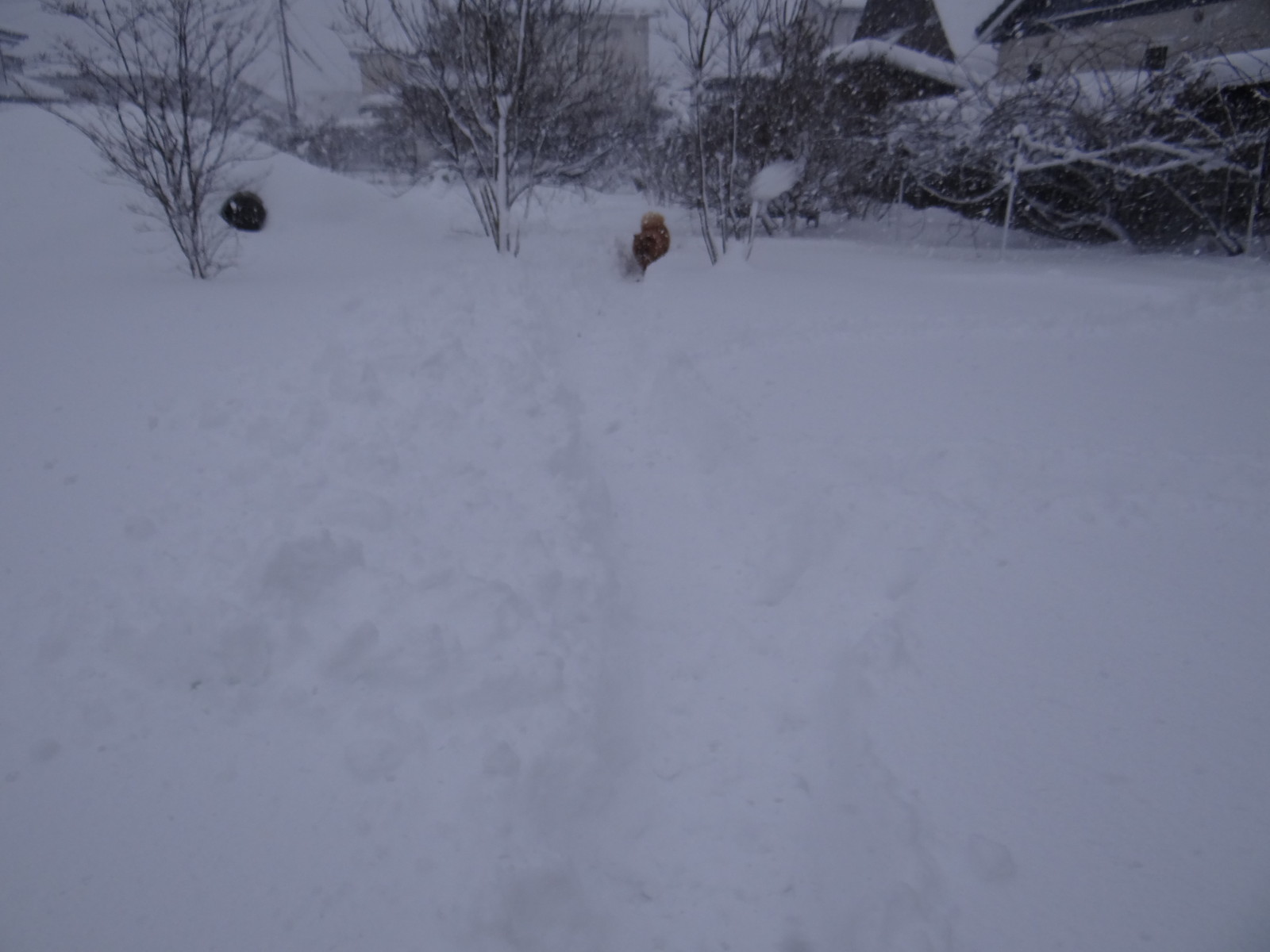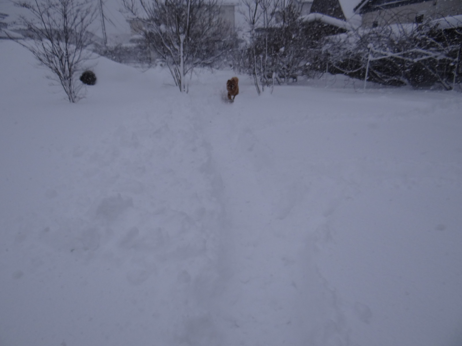 今日は数年ぶりの大雪~~レースコース作ってあげようと思って