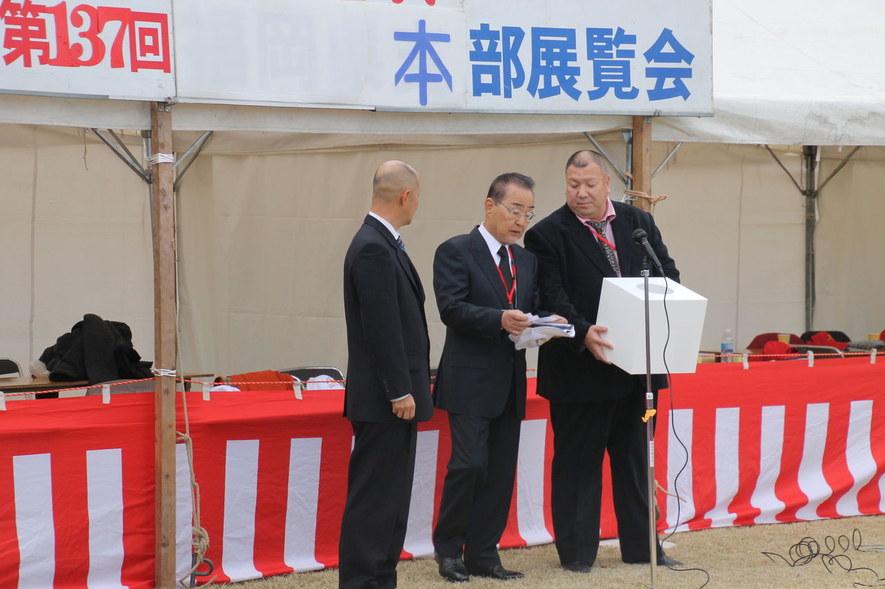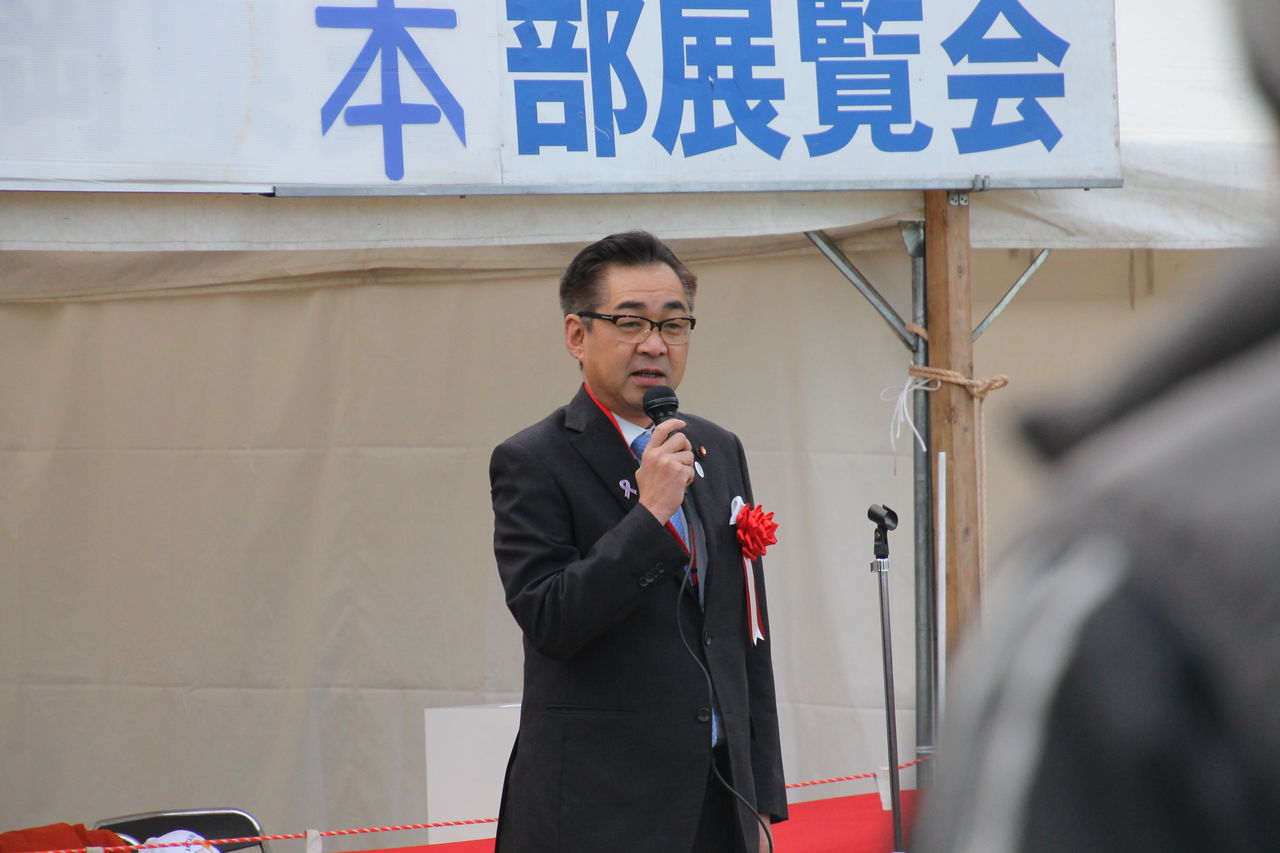この会場のすぐ後ろにはまだ仮設住宅が並び、震災の爪あとは深く1年半たったいまでも回復にはほど遠く、夢も希望もなくした熊本で、こうして本部展を開かしていただけたことがみなの力になるというような内容でした(私の覚えです)皆さんのご協力に感謝しますと何度もおっしゃっていました。