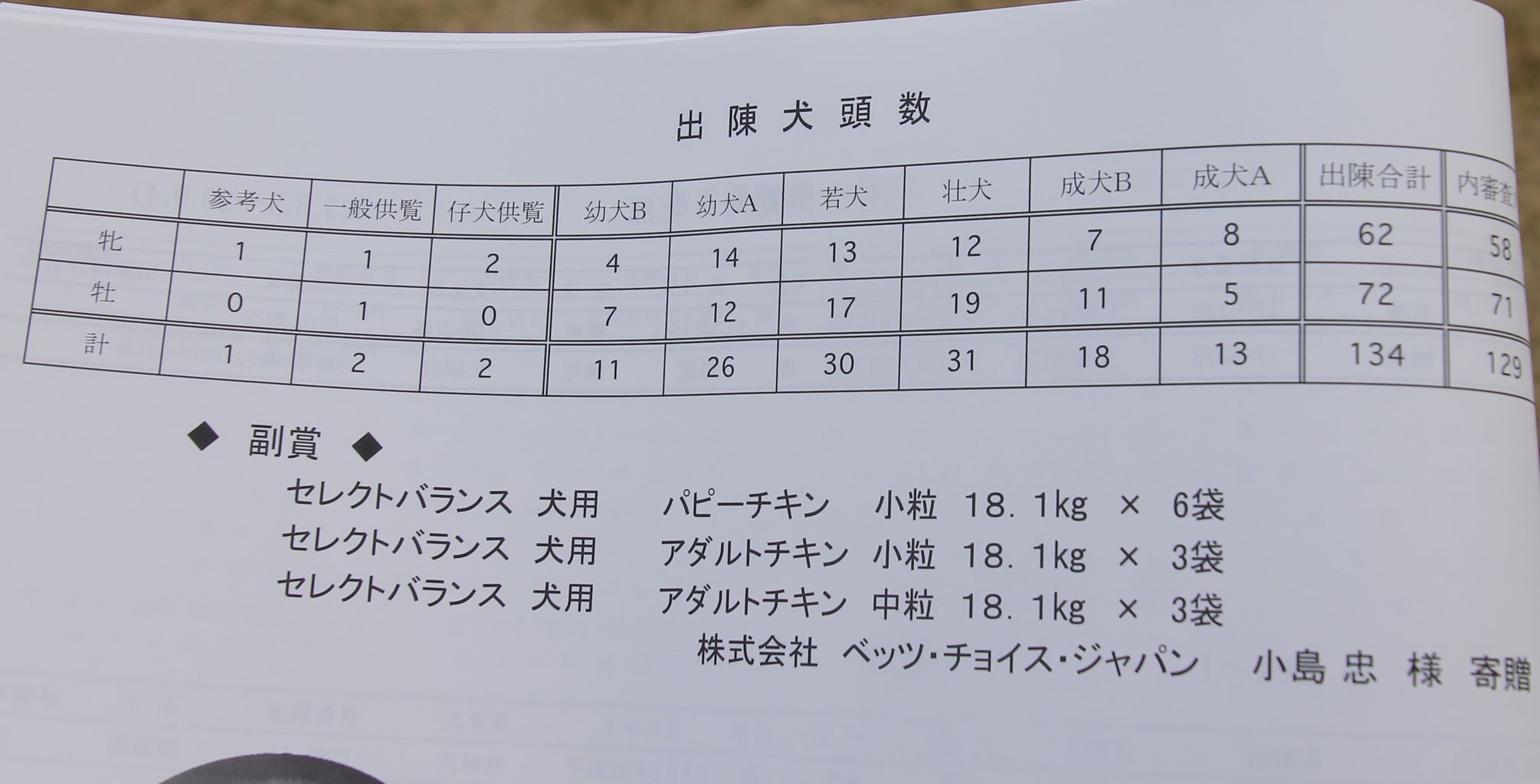 出陳は134頭でした。