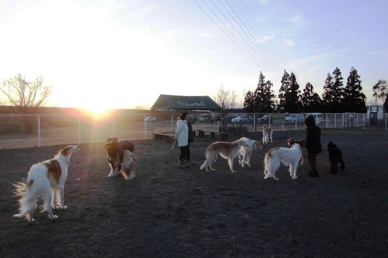 今年最後のドッグランを楽しんで、もうすぐ日没です