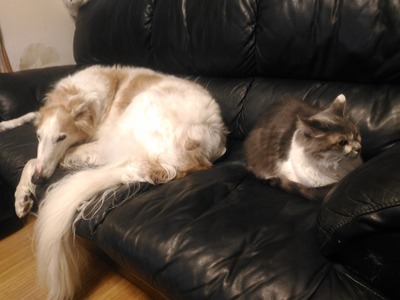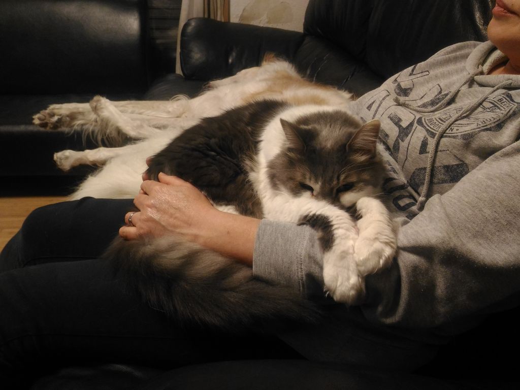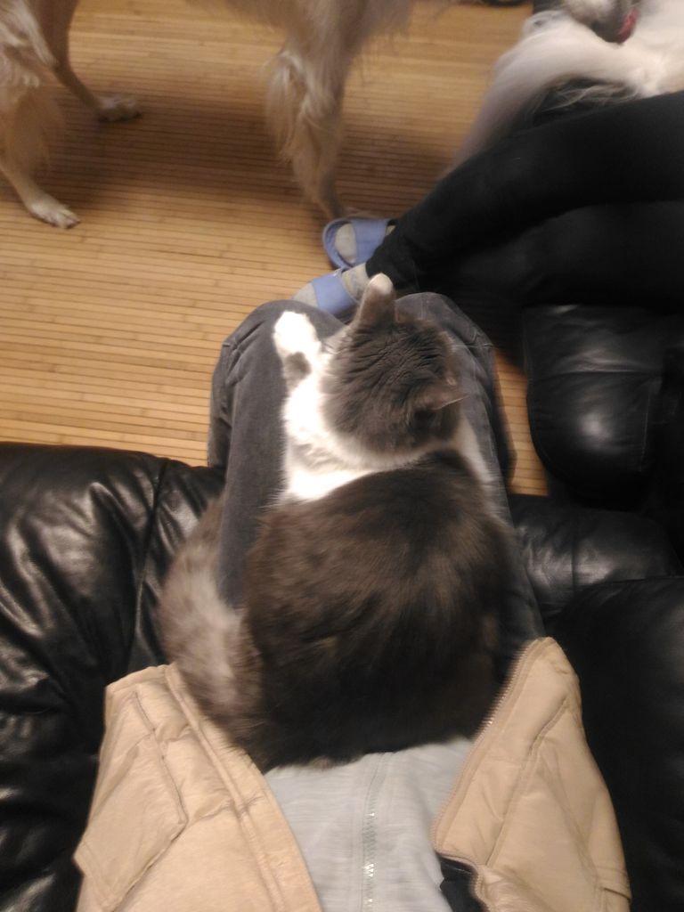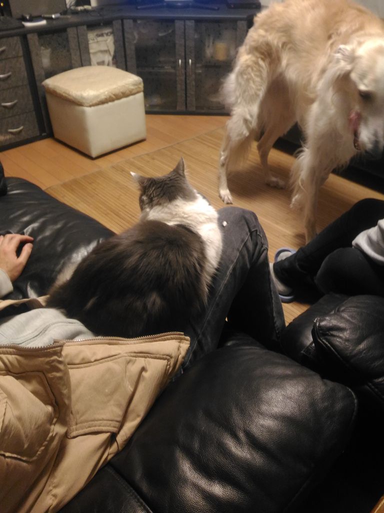 父がソファーに座ると、かわいいことに膝の上に座りに来る