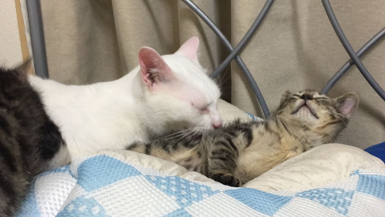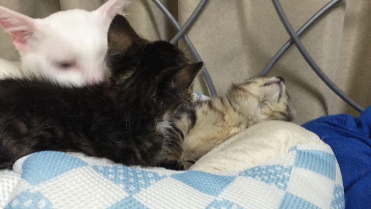 保護子猫兄弟も随分と大きくなりました。でも、おっぱいを吸いに来ます。