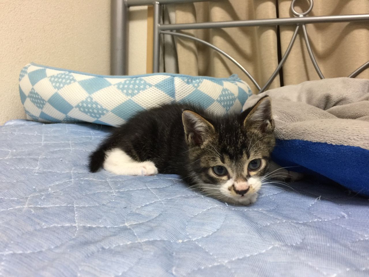 そこに、別の方から連絡を受け、民家の軒下でずっと鳴いていた子猫を預かる事に…。