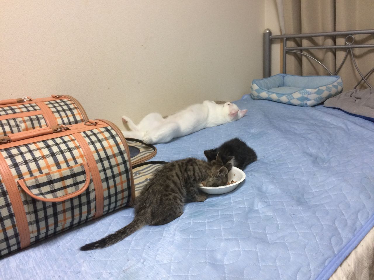 お別れの際に非常に慌ててた麿白先生。今では子猫の旅立ちは慣れっこですが…。