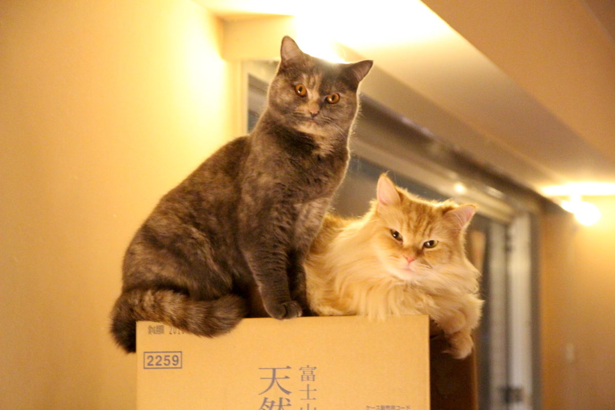 また、ペコ&茶々は狭いダンボールの上で一緒にぬくぬくしてました(*^^*)