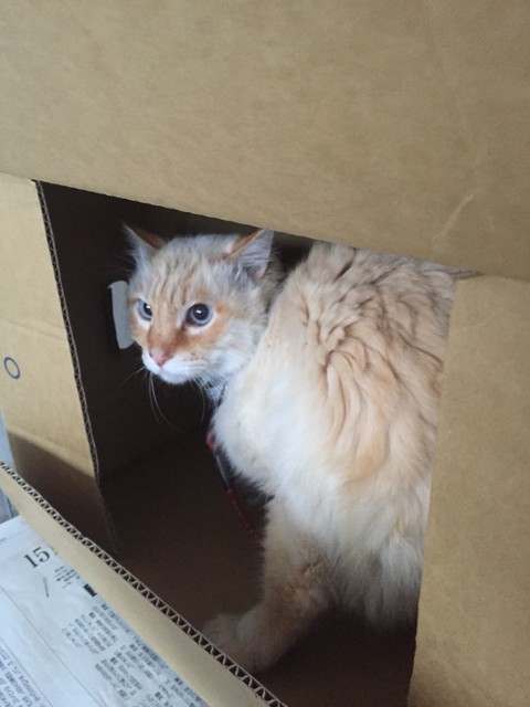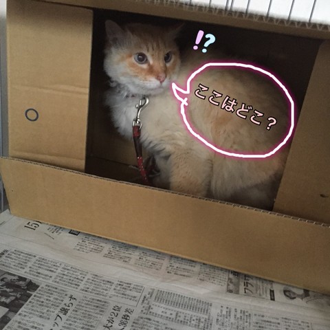 まだまだ緊張状態が続いてますこのダンボールの中が落ち着くよう
