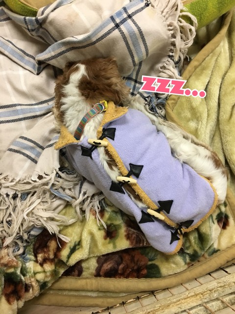 チェリーおばあちゃんは爆睡中お洋服きたから暖かいね
