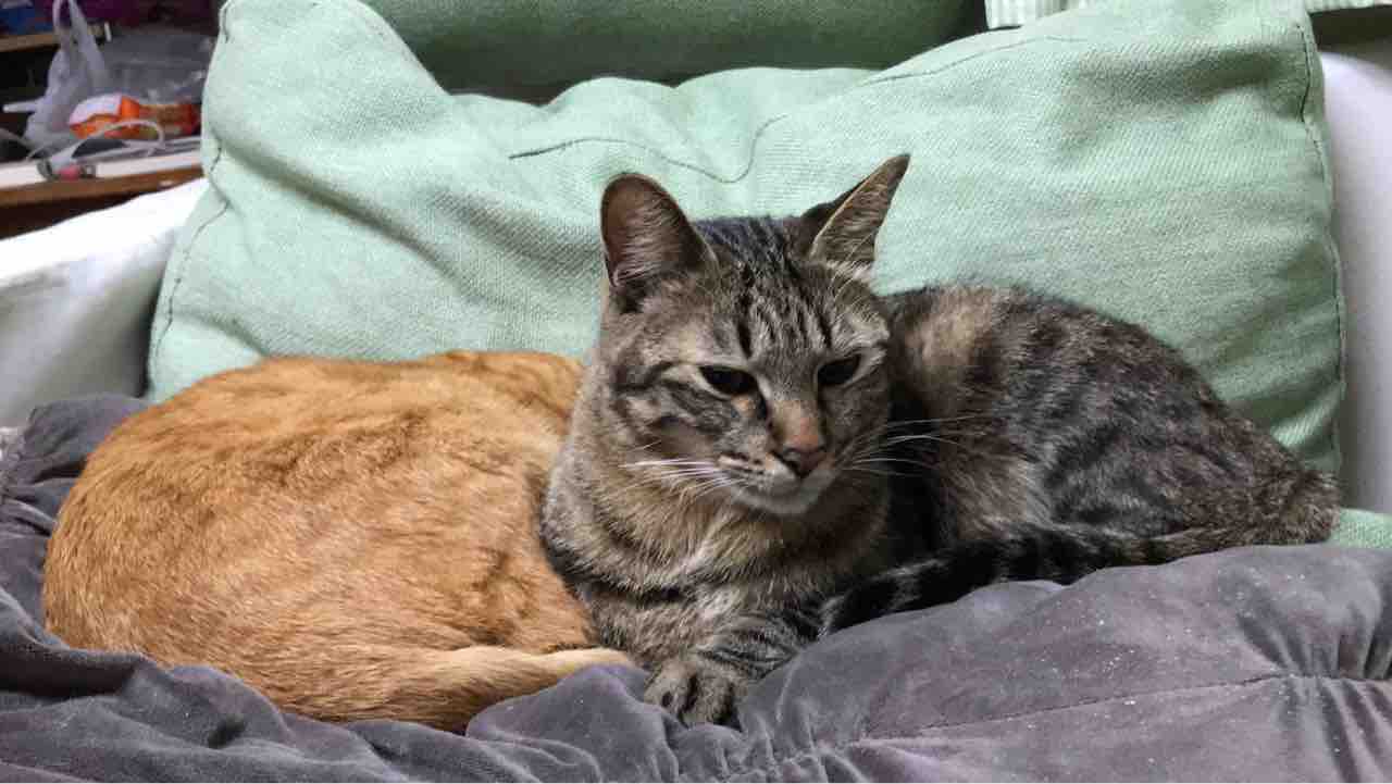 普通の猫なら嫌なもんは嫌、とすぐに逃げたりしそうなもんなんですけど、何故か時雉はこの顔をしながら耐えます。麿白に対する優しさな気がします。