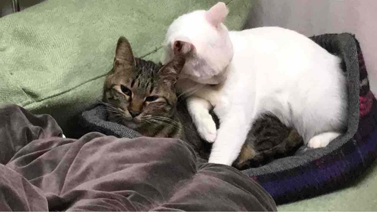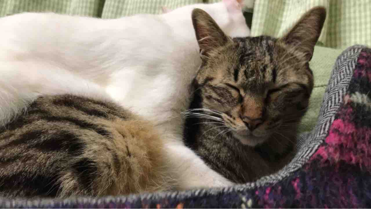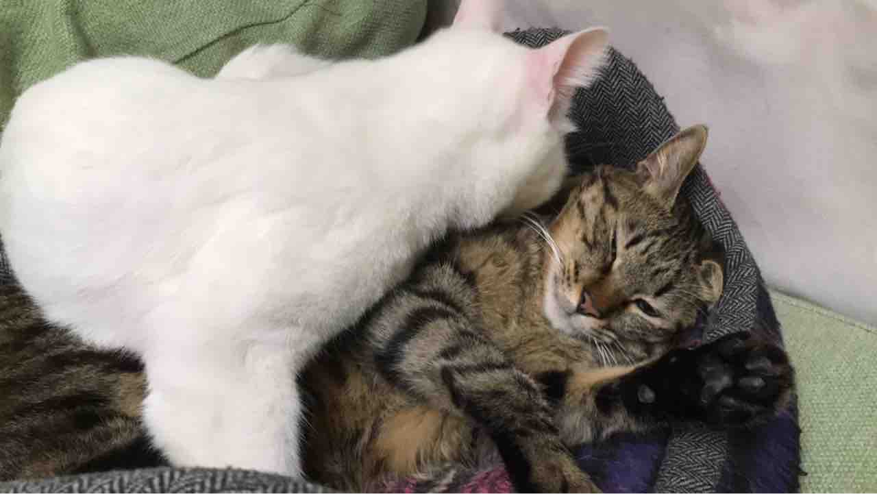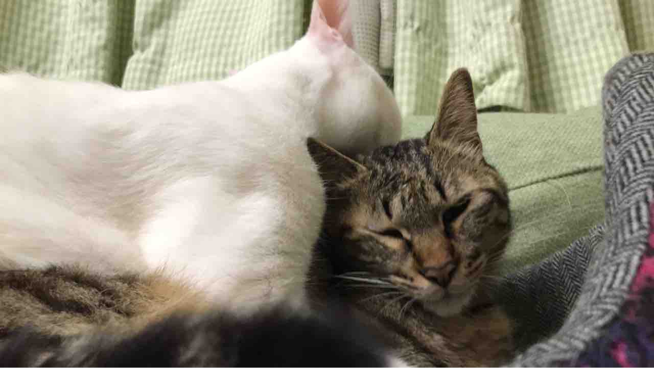 グルーミングじゃなくても、麿白先生は無意識に時雉をクッション代わりにするときも。