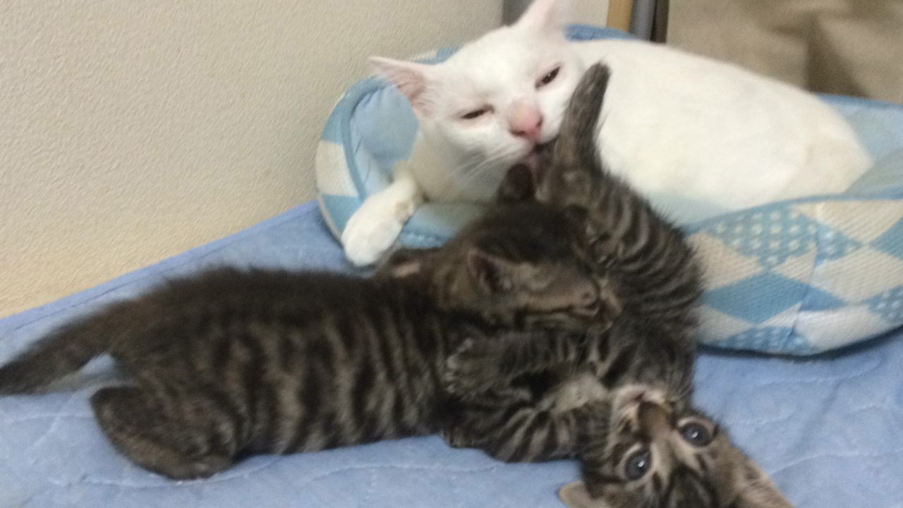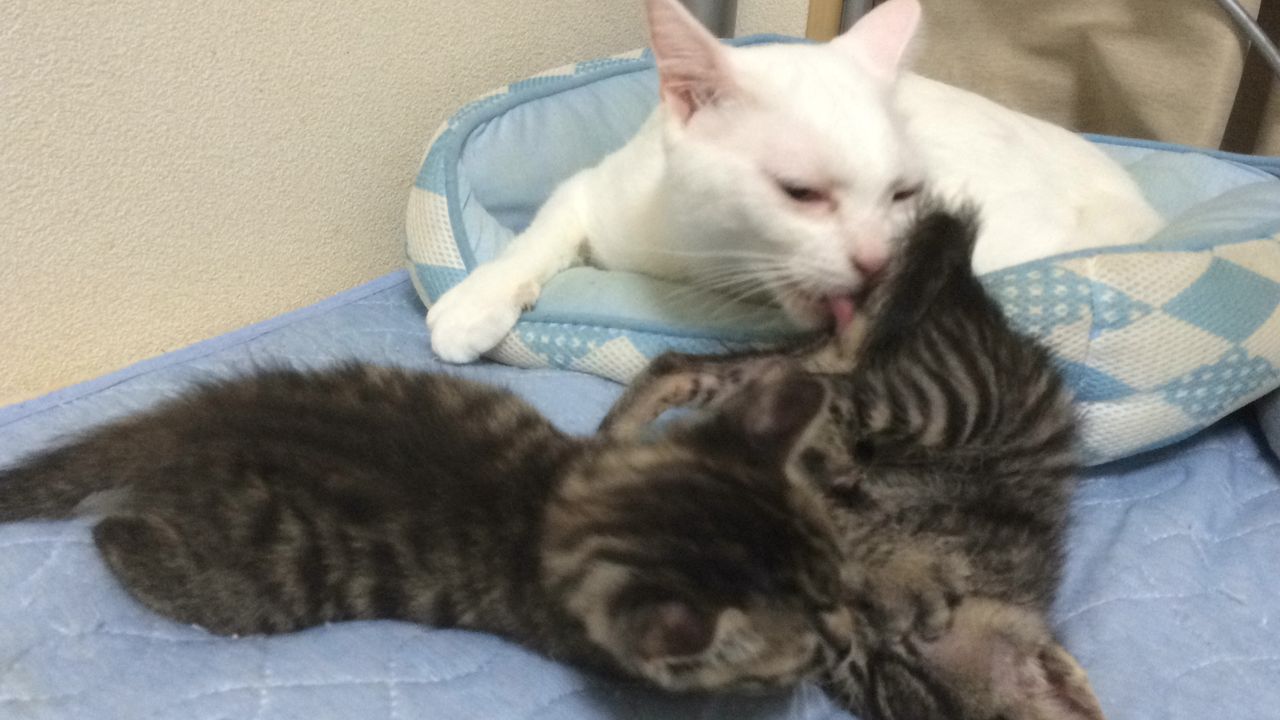 ふむ、こんなときにも甘えたいのだね。グルーミングしてあげよう。
