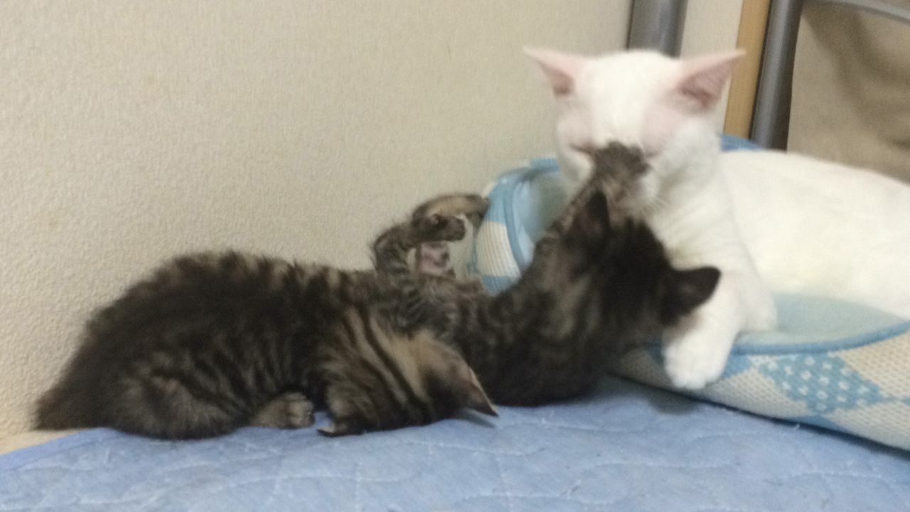 そしてサトイモレスリングもかつてちび時雉が保護子猫兄弟としていたようになってきました。
