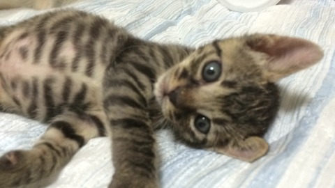 ちゃんとした子猫の形になり、柄も子猫っぽくなってきたサトイモーズ。