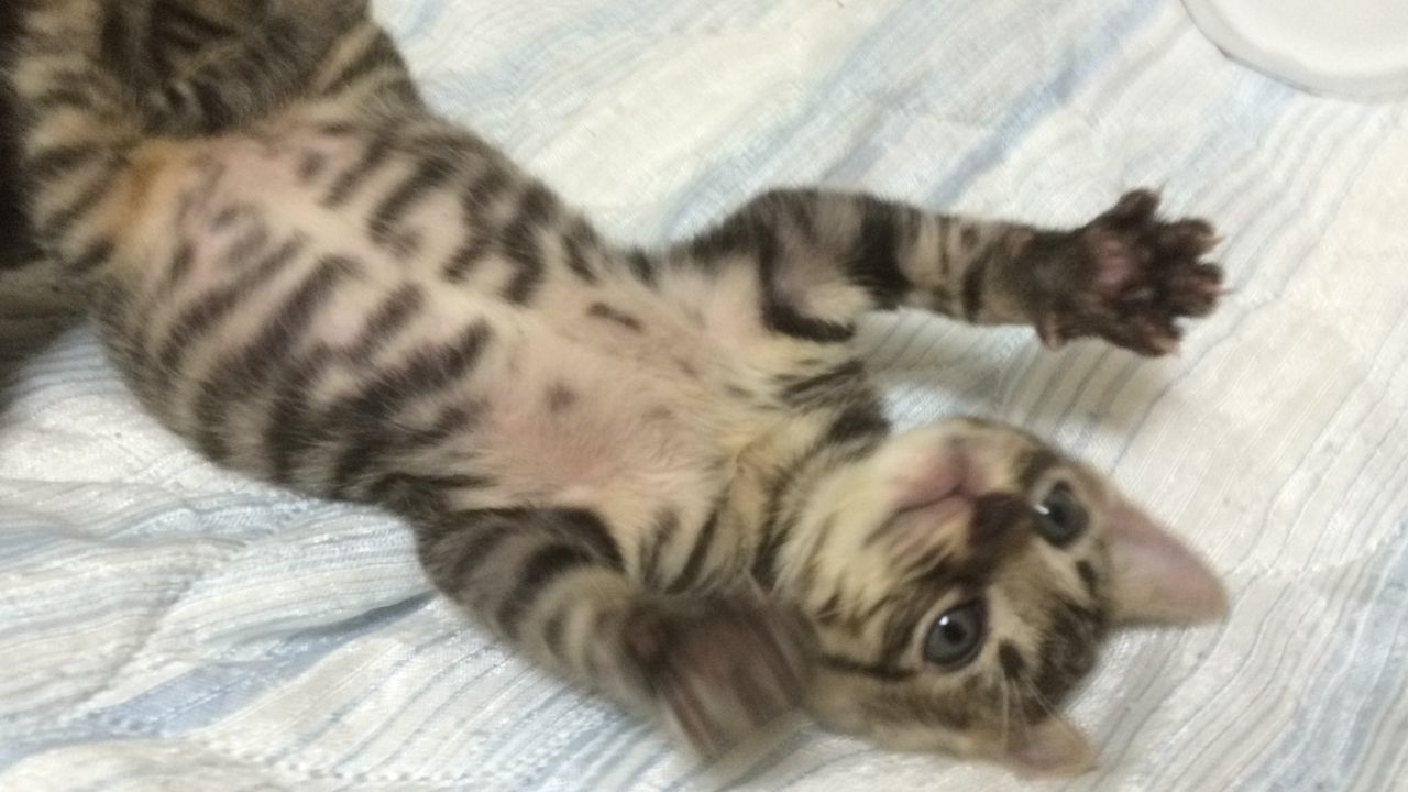 特にお腹。この時期はまだうっすらとしてますが、これが実に子猫ならではというか。