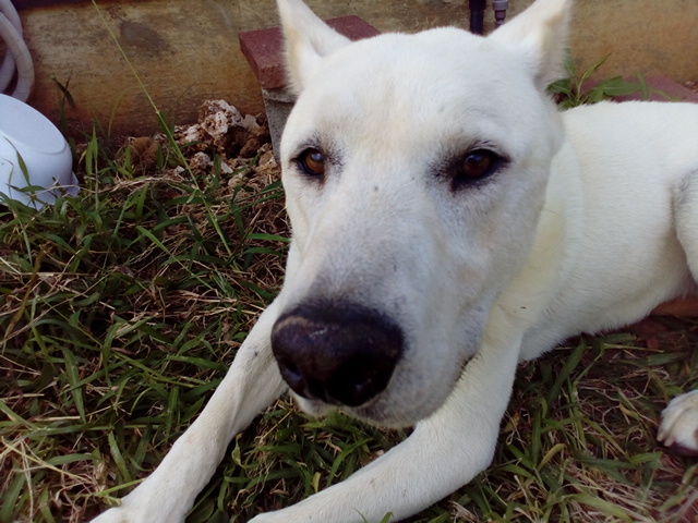 散歩の後、日陰でくつろぐマルちゃん(大型犬MIX♂9歳)。
