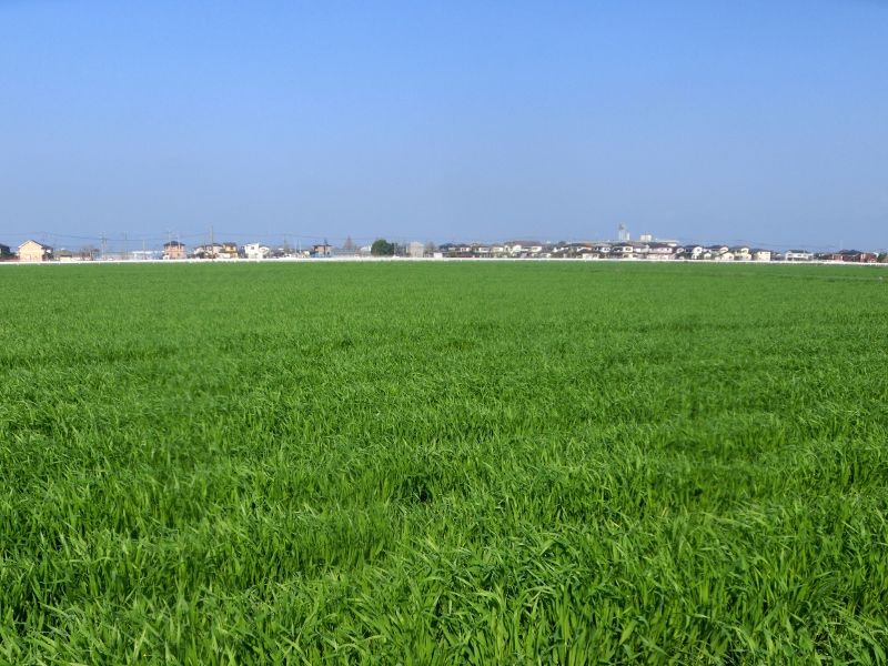 田んぼの麦の穂も、青々してて綺麗です。