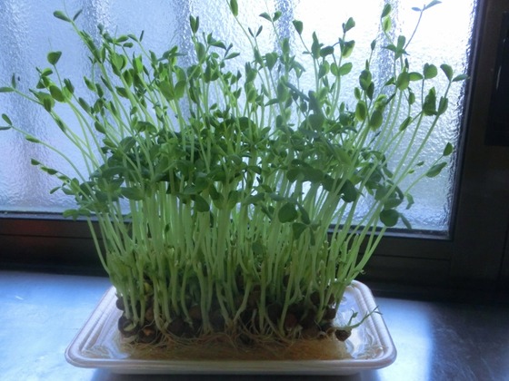 食べた豆苗を妻が出窓に置いてたら、出たぁ~っ。