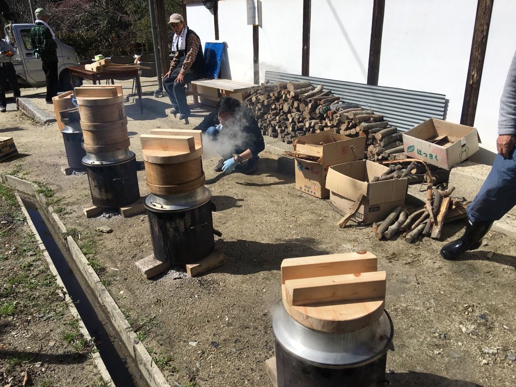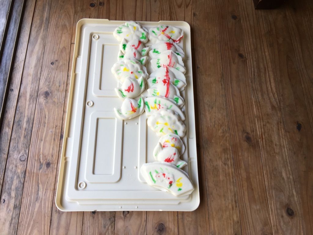 米粉を熱湯で練って、型に入れておこします。(陶器の作り方と同じです、米粉の練り方も陶器の土を練るのと同じ菊練なんですよ)色粉で色をつけて、蒸したら出来上がりです。砂糖をつけたり、焼いて砂糖醤油を漬けて食べたりします。コロスケ地方は4月3日がひな祭りなので、おこしもんづくりは春休みのお楽しみでした。