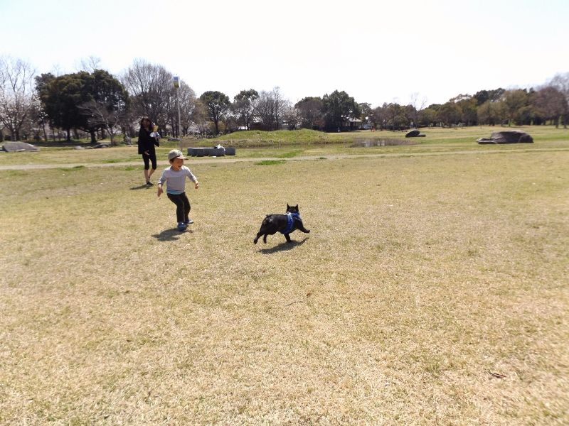 遊びに来ていたフレンチちゃんと追い駆けっこ。