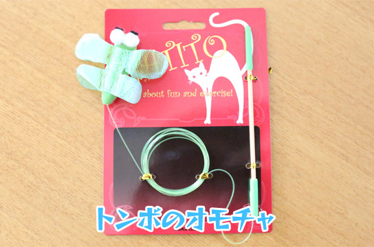 ただ、このオモチャ持ち手の部分がかなり短い事、ビニール紐に独特のクセ(カール)がついている事、先端のトンボが非常に軽い事が重なって人間側の思い通りの動きはさせられません