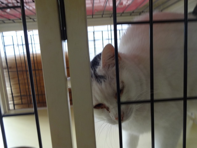 隣の猫部屋から1匹の猫ちゃんが、呼びかけてくれたので