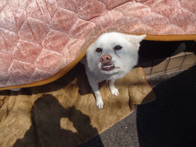 チエリちゃんもいます。少し暖かくなったので、洋服を脱いだんだね