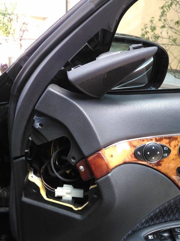 ベンツの場合、内張自体は外さずに、ミラー裏のスピーカーを外し