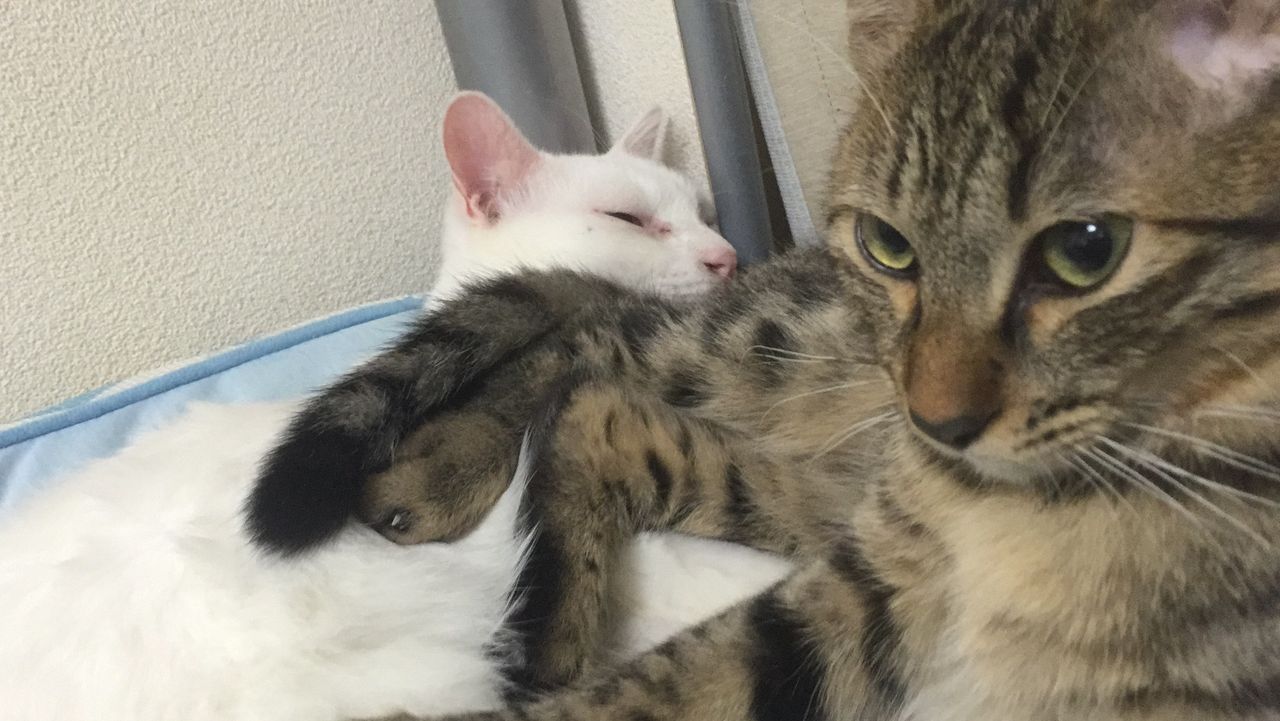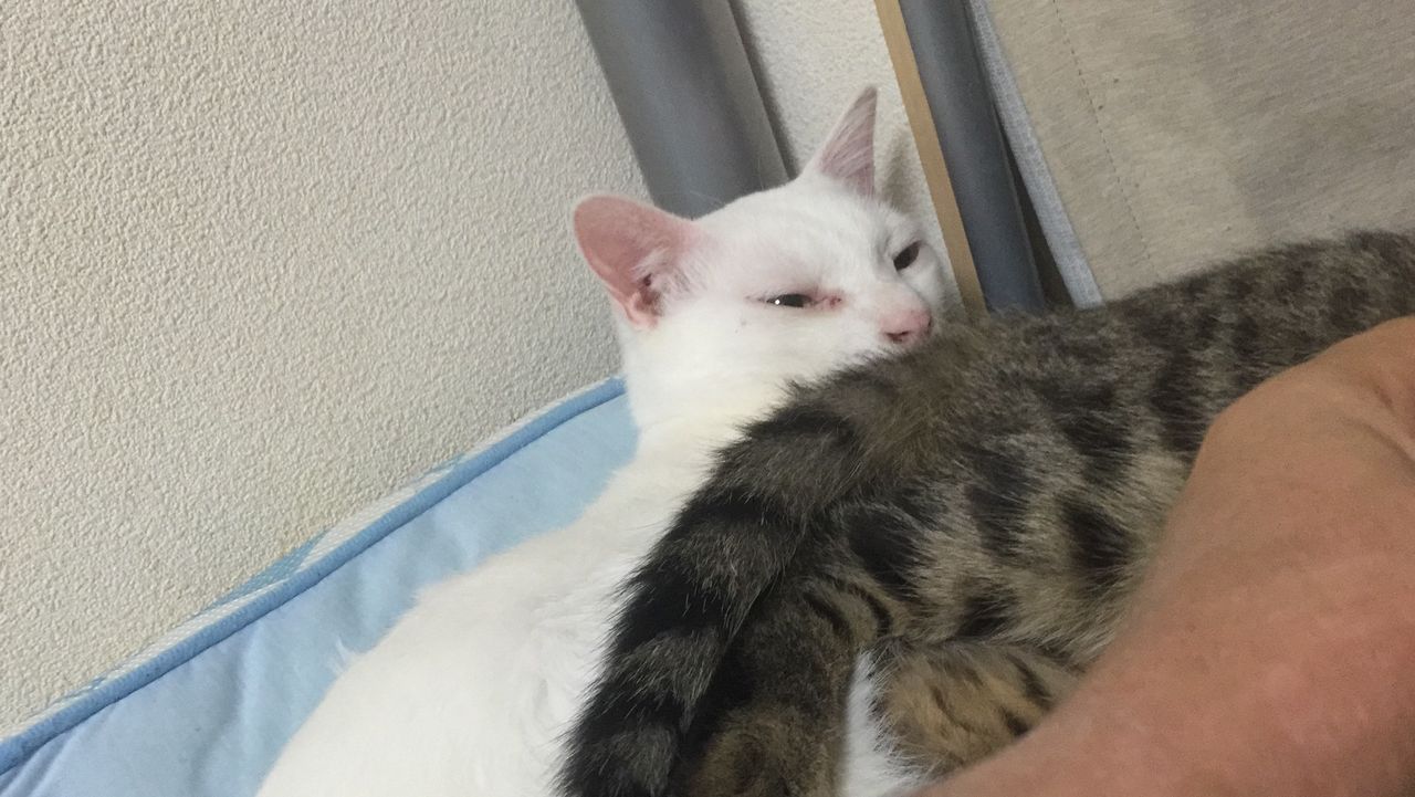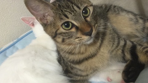 マロベッドで一緒だった麿白を足蹴にしてこの角度。