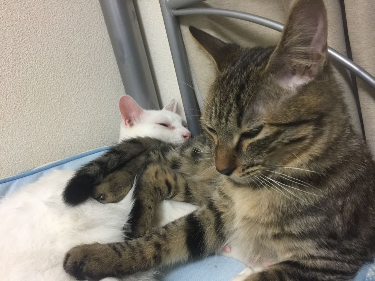サトイモ飼育で兄振りを発揮し、麿白と自分に挟まれてゴキゲンの時。