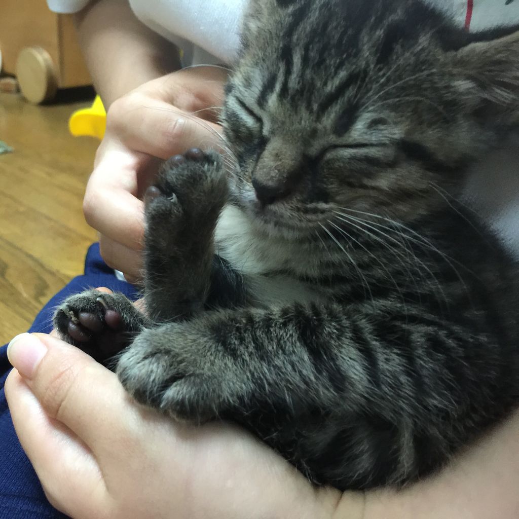 ハムスターや魚は飼ってたけど、猫を触る経験はそんなになかったそうなんですが。