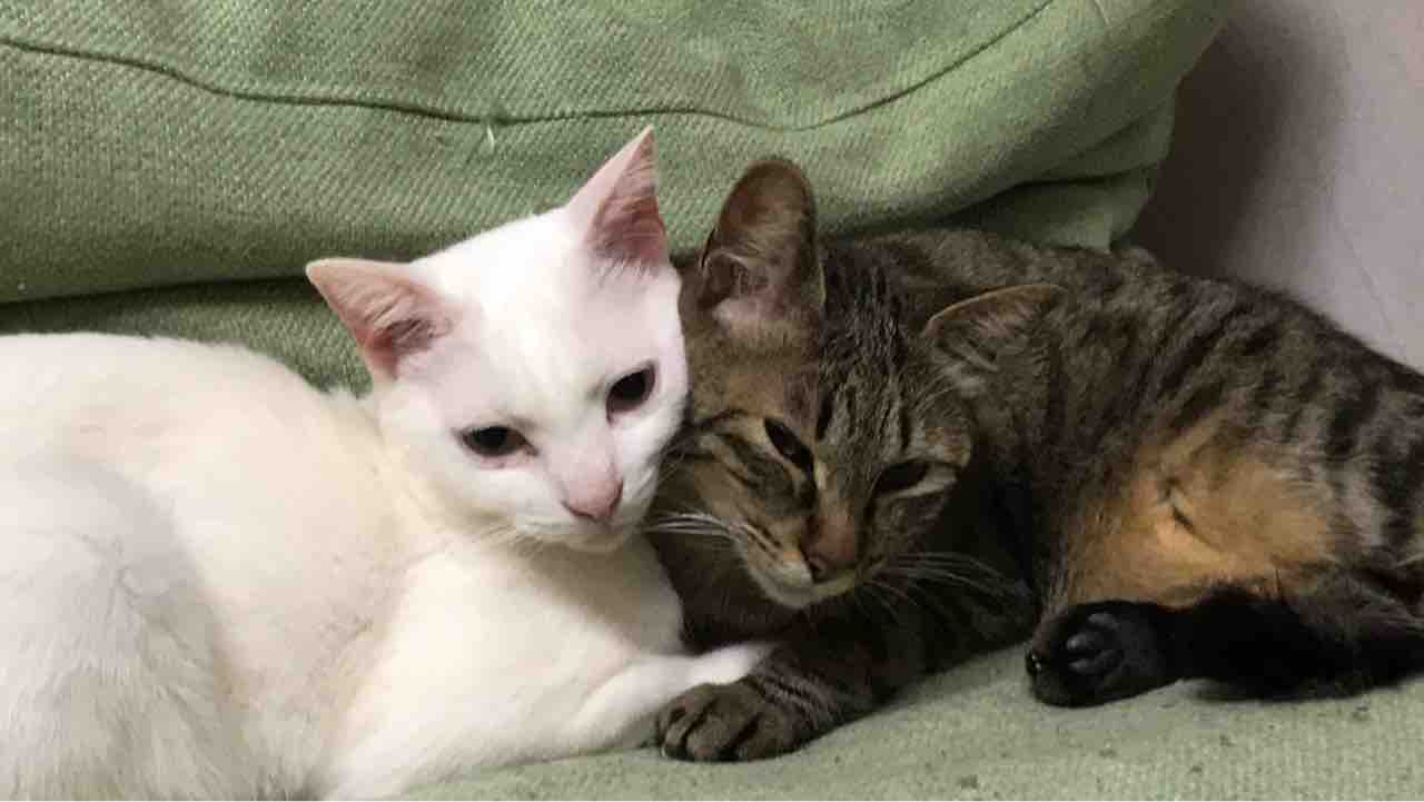 レスリングしてたと思ったらぺったりくっつく二匹。