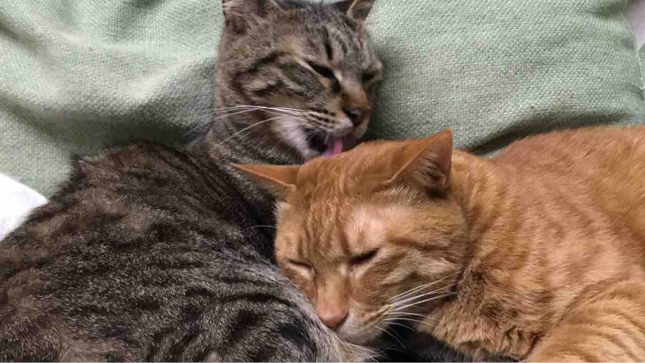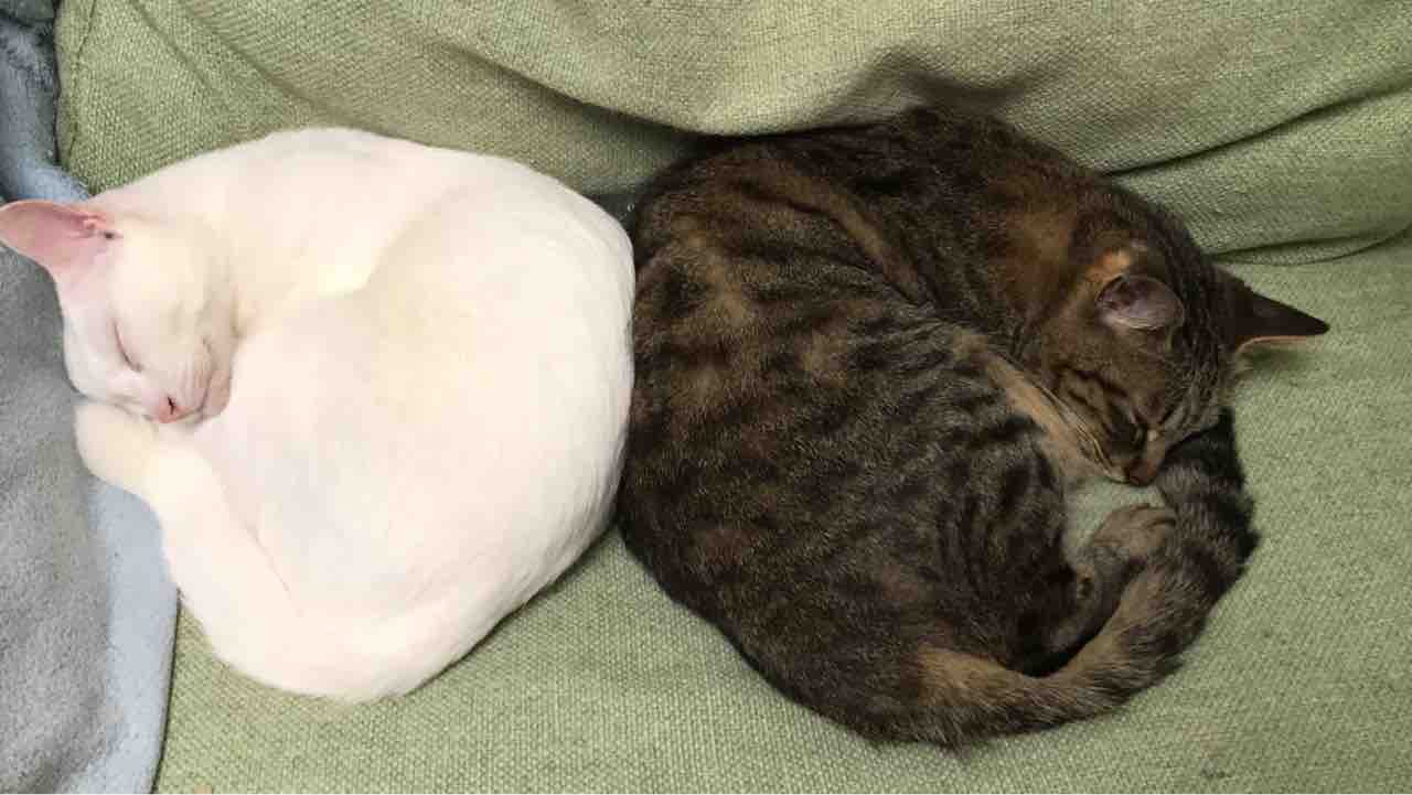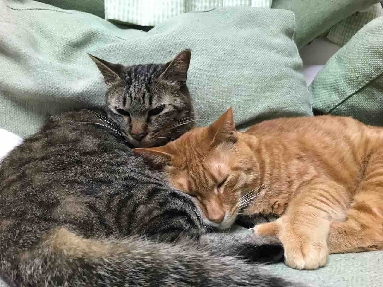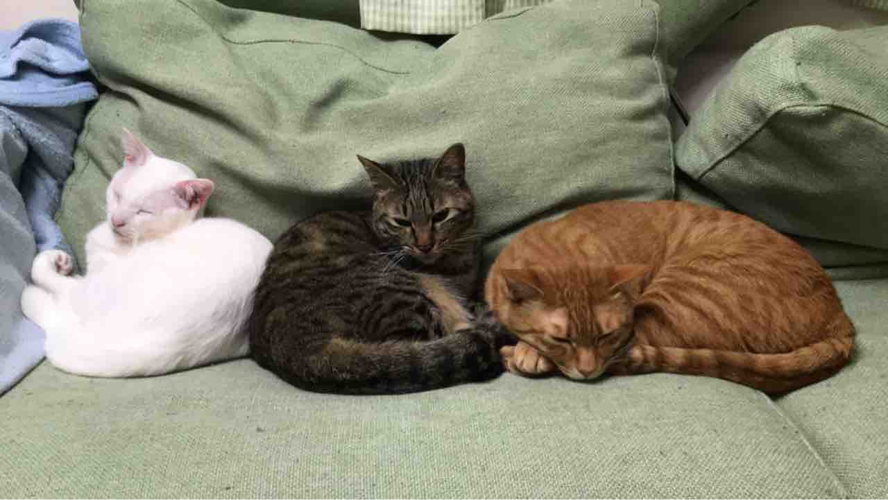 居間にいると、三匹はだいたいそこに集まって団子になってます。