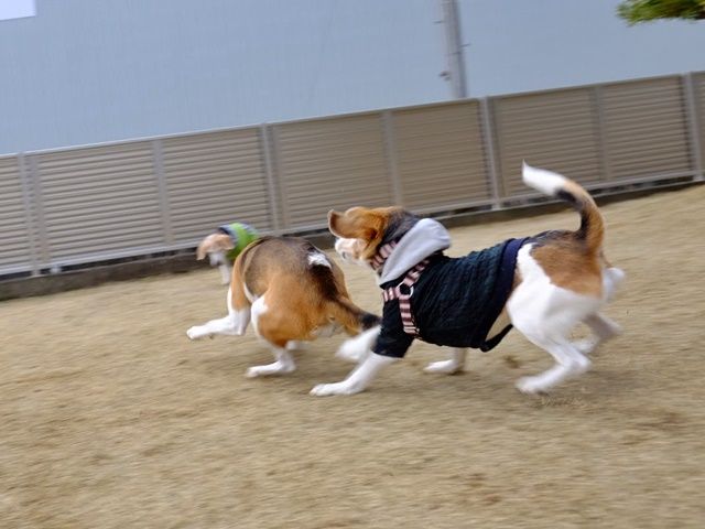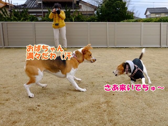 ロビンに誘われ乗ってきて「オラオラ~」なひびこ、45秒を過ぎた頃から走るよ~
