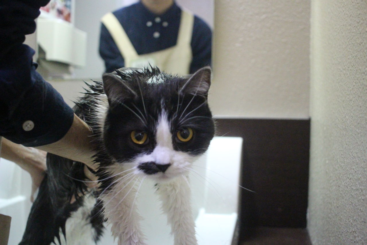 抵抗も虚しく、シャンプーされるおちょびであった…。