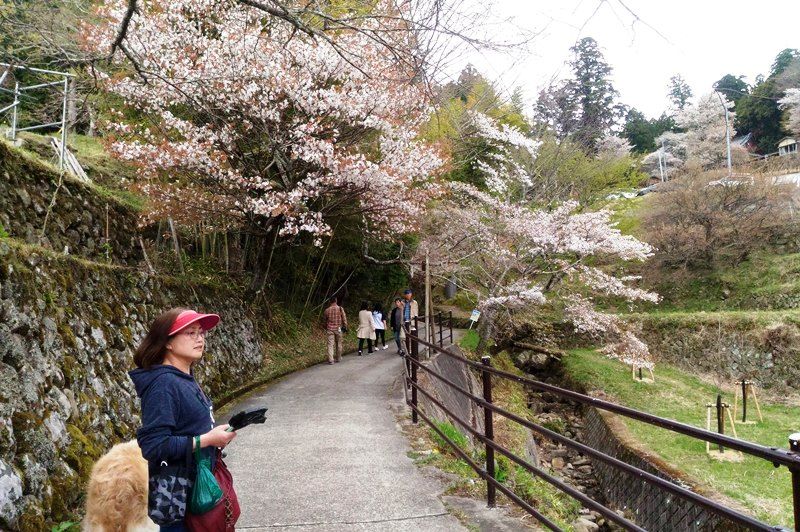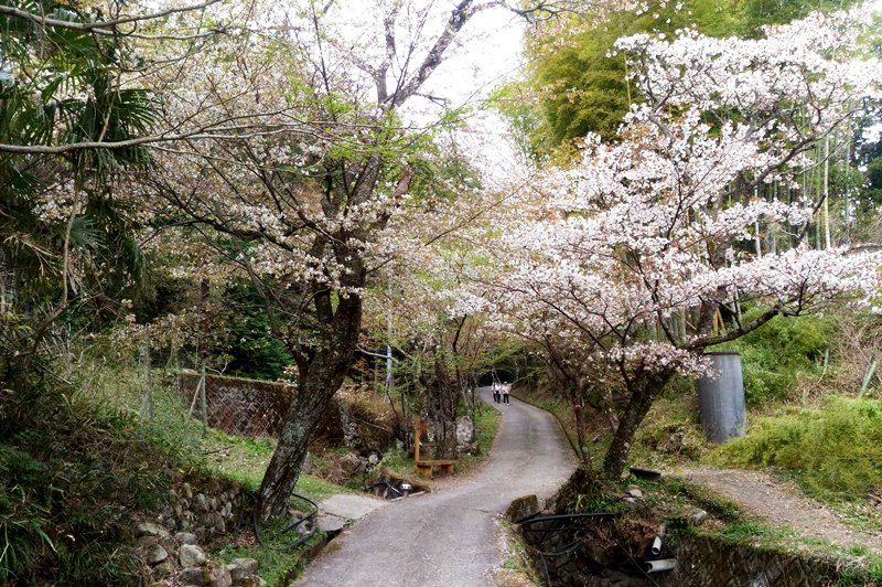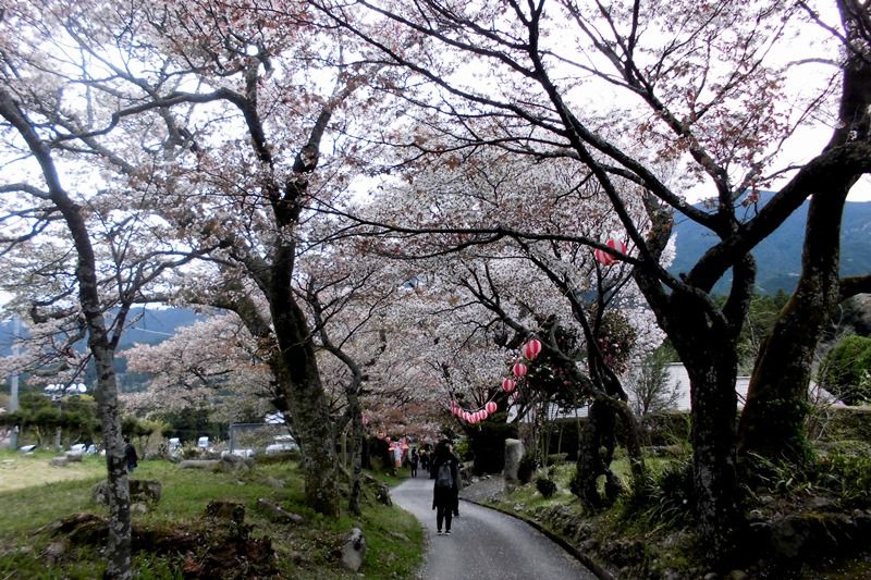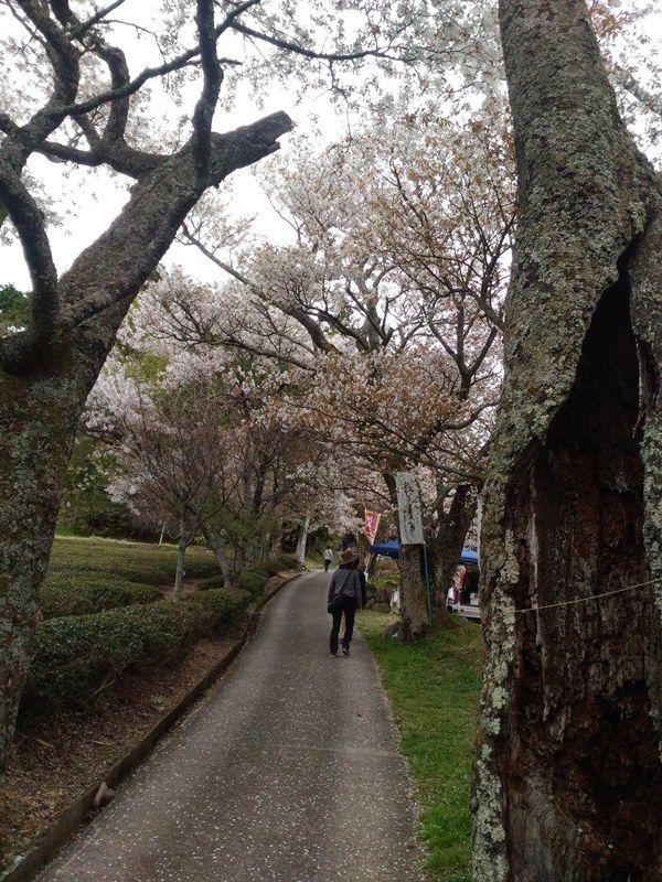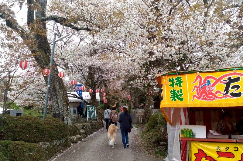 駐車場からたこ焼きの屋台を横目に上段の真福院までの桜道を上ります