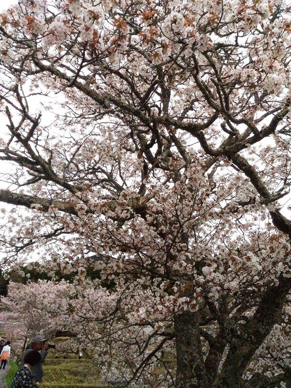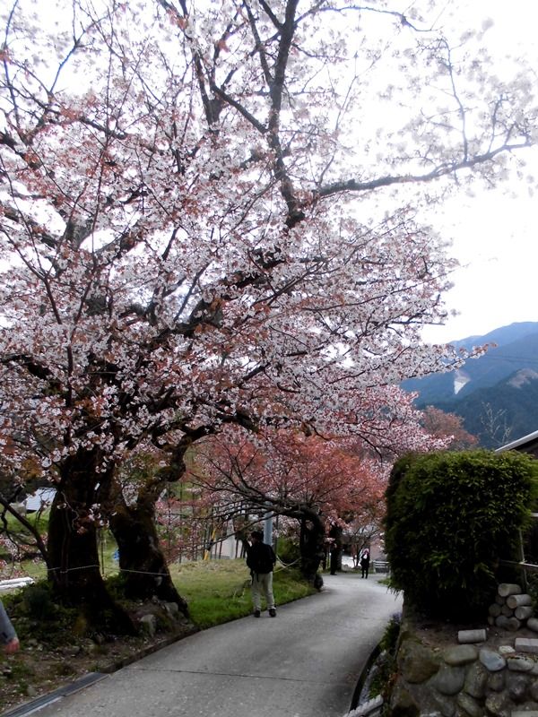 ソメイヨシノより見頃は遅れ、花と葉が同時に出るヤマザクラの古木が500本あまりが1.5km続く