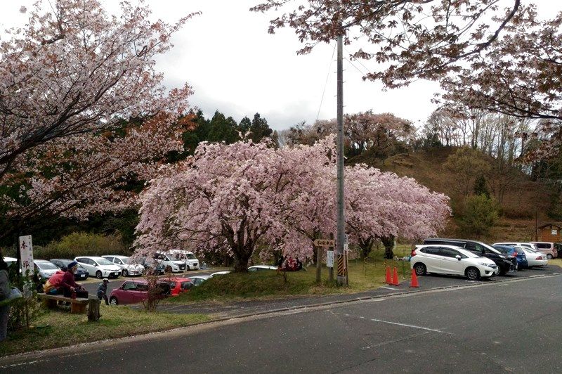 駐車場付近はしだれ桜は満開で早咲きの物はすでに散っていた
